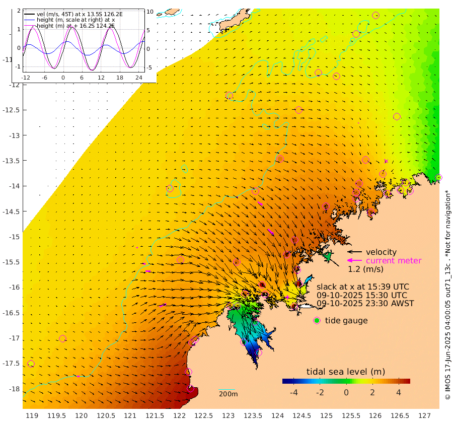 10cm/s 65T +10cm/s rms + 1cm/s 1T. NWSBRW 205m 19cm/s 98T +11cm/s rms + 6cm/s -110T. NWSROW 199m 67cm/s 135T +5cm/s rms + 2cm/s 65T. CAM050 58m 46cm/s 124T +12cm/s rms + 5cm/s 92T. CAM100 99m 13cm/s 84T +7cm/s rms + 1cm/s -85T. KIM400 396m 25cm/s 95T +9cm/s rms + 5cm/s -119T. KIM200 208m 42cm/s 95T +11cm/s rms + 5cm/s -147T. KIM100 99m 62cm/s 67T +8cm/s rms + 3cm/s -103T. KIM050 59m 4cm/s -149T +4cm/s rms + 2cm/s 23T. TIMORS88 91m 127cm Imperieuse Reef 212cm Mermaid Reef 467cm Broome 352cm Cape Baskerville 341cm Red Bluff 344cm Cape Boileau 198cm Scott Reef (WA) 212cm Ashmore Reef 279cm Karrakatta Bay 227cm Sunday Island -109cm Valentine Island -263cm Derby -49cm Port Usborne 369cm Bedford Islands 433cm Yampi Sound (Koolan Island) 471cm Macleay Island 354cm Adele Island 269cm Browse Island 453cm Shale Island 452cm Lizard Island 364cm Hall Point 425cm Degerando Island 418cm White Island 233cm Skua No. 4 Well 171cm Jabiru 389cm Maret Island 353cm Baudin Island 363cm Cape Voltaire (Krait Bay) 146cm Dillon Shoal 149cm Laminaria 382cm Port Warrender 259cm Troughton Island 347cm Cassini Island 258cm West Holothuria Reef Offshore 242cm Jar Island 276cm Lynher Bank 316cm Heywood Shoal 195cm Pee Shoal 151cm Van Cloon Shoal 184cm Carronade Island 189cm Guy Point 188cm Napier Broome Bay 67cm Lesueur Island