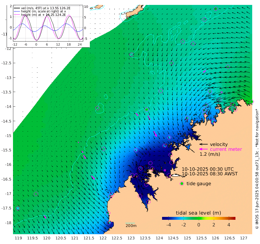 49cm/s 137T +10cm/s rms + 1cm/s 1T. NWSBRW 205m 50cm/s 148T +11cm/s rms + 6cm/s -110T. NWSROW 199m 90cm/s 153T +5cm/s rms + 2cm/s 65T. CAM050 58m 70cm/s 155T +12cm/s rms + 5cm/s 92T. CAM100 99m 14cm/s 147T +7cm/s rms + 1cm/s -85T. KIM400 396m 30cm/s 141T +9cm/s rms + 5cm/s -119T. KIM200 208m 59cm/s 148T +11cm/s rms + 5cm/s -147T. KIM100 99m 70cm/s 139T +8cm/s rms + 3cm/s -103T. KIM050 59m 46cm/s -127T +4cm/s rms + 2cm/s 23T. TIMORS88 91m -194cm Imperieuse Reef -68cm Mermaid Reef -197cm Broome -138cm Cape Baskerville -227cm Red Bluff -137cm Cape Boileau -65cm Scott Reef (WA) -124cm Ashmore Reef -382cm Karrakatta Bay -384cm Sunday Island -496cm Valentine Island -465cm Derby -474cm Port Usborne -355cm Bedford Islands -400cm Yampi Sound (Koolan Island) -390cm Macleay Island -226cm Adele Island 17cm Browse Island -535cm Shale Island -513cm Lizard Island -342cm Hall Point -295cm Degerando Island -239cm White Island -119cm Skua No. 4 Well -131cm Jabiru -179cm Maret Island -161cm Baudin Island -164cm Cape Voltaire (Krait Bay) -130cm Dillon Shoal -60cm Laminaria -198cm Port Warrender -144cm Troughton Island -155cm Cassini Island -114cm West Holothuria Reef Offshore -131cm Jar Island -135cm Lynher Bank -137cm Heywood Shoal -126cm Pee Shoal -97cm Van Cloon Shoal -60cm Carronade Island -59cm Guy Point -57cm Napier Broome Bay -4cm Lesueur Island