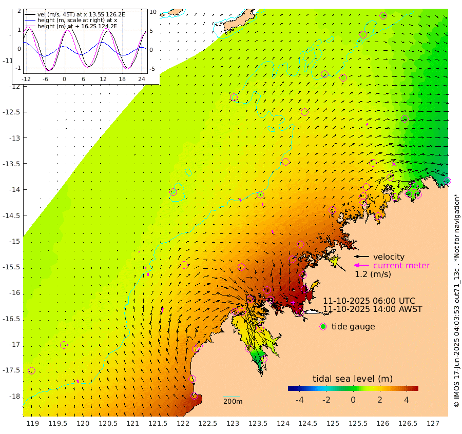 25cm/s -34T +10cm/s rms + 1cm/s 1T. NWSBRW 205m 28cm/s -18T +11cm/s rms + 6cm/s -110T. NWSROW 199m 25cm/s -23T +5cm/s rms + 2cm/s 65T. CAM050 58m 24cm/s -11T +12cm/s rms + 5cm/s 92T. CAM100 99m 7cm/s 15T +7cm/s rms + 1cm/s -85T. KIM400 396m 13cm/s 0T +9cm/s rms + 5cm/s -119T. KIM200 208m 27cm/s -7T +11cm/s rms + 5cm/s -147T. KIM100 99m 44cm/s 0T +8cm/s rms + 3cm/s -103T. KIM050 59m 21cm/s 53T +4cm/s rms + 2cm/s 23T. TIMORS88 91m 132cm Imperieuse Reef 102cm Mermaid Reef 313cm Broome 210cm Cape Baskerville 289cm Red Bluff 206cm Cape Boileau 89cm Scott Reef (WA) 116cm Ashmore Reef 342cm Karrakatta Bay 321cm Sunday Island 184cm Valentine Island 98cm Derby 226cm Port Usborne 372cm Bedford Islands 425cm Yampi Sound (Koolan Island) 431cm Macleay Island 265cm Adele Island 77cm Browse Island 529cm Shale Island 513cm Lizard Island 356cm Hall Point 347cm Degerando Island 309cm White Island 116cm Skua No. 4 Well 75cm Jabiru 236cm Maret Island 208cm Baudin Island 202cm Cape Voltaire (Krait Bay) 72cm Dillon Shoal 49cm Laminaria 218cm Port Warrender 91cm Troughton Island 175cm Cassini Island 108cm West Holothuria Reef Offshore 99cm Jar Island 174cm Lynher Bank 173cm Heywood Shoal 88cm Pee Shoal 31cm Van Cloon Shoal 11cm Carronade Island 8cm Guy Point 8cm Napier Broome Bay -126cm Lesueur Island