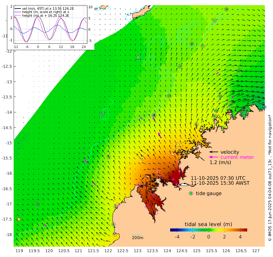 37cm/s -48T +10cm/s rms + 1cm/s 1T. NWSBRW 205m 47cm/s -36T +11cm/s rms + 6cm/s -110T. NWSROW 199m 88cm/s -30T +5cm/s rms + 2cm/s 65T. CAM050 58m 67cm/s -29T +12cm/s rms + 5cm/s 92T. CAM100 99m 12cm/s -40T +7cm/s rms + 1cm/s -85T. KIM400 396m 30cm/s -44T +9cm/s rms + 5cm/s -119T. KIM200 208m 56cm/s -40T +11cm/s rms + 5cm/s -147T. KIM100 99m 63cm/s -48T +8cm/s rms + 3cm/s -103T. KIM050 59m 39cm/s 54T +4cm/s rms + 2cm/s 23T. TIMORS88 91m 115cm Imperieuse Reef -1cm Mermaid Reef 67cm Broome 30cm Cape Baskerville 120cm Red Bluff 28cm Cape Boileau -3cm Scott Reef (WA) 34cm Ashmore Reef 265cm Karrakatta Bay 278cm Sunday Island 409cm Valentine Island 416cm Derby 399cm Port Usborne 229cm Bedford Islands 248cm Yampi Sound (Koolan Island) 241cm Macleay Island 110cm Adele Island -84cm Browse Island 368cm Shale Island 348cm Lizard Island 207cm Hall Point 152cm Degerando Island 104cm White Island 25cm Skua No. 4 Well 33cm Jabiru 49cm Maret Island 37cm Baudin Island 28cm Cape Voltaire (Krait Bay) 40cm Dillon Shoal -4cm Laminaria 40cm Port Warrender 1cm Troughton Island 18cm Cassini Island -2cm West Holothuria Reef Offshore 3cm Jar Island 44cm Lynher Bank 23cm Heywood Shoal 27cm Pee Shoal -8cm Van Cloon Shoal -59cm Carronade Island -63cm Guy Point -65cm Napier Broome Bay -118cm Lesueur Island