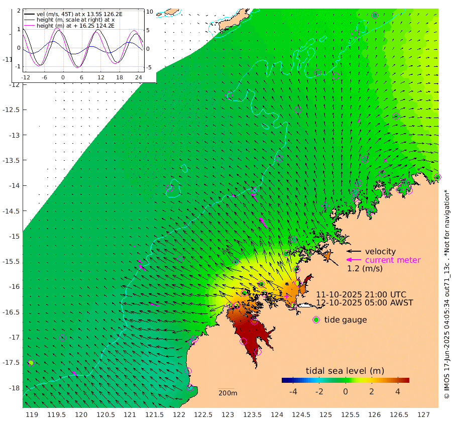 42cm/s -56T +10cm/s rms + 1cm/s 1T. NWSBRW 205m 46cm/s -46T +11cm/s rms + 6cm/s -110T. NWSROW 199m 110cm/s -36T +5cm/s rms + 2cm/s 65T. CAM050 58m 81cm/s -38T +12cm/s rms + 5cm/s 92T. CAM100 99m 17cm/s -62T +7cm/s rms + 1cm/s -85T. KIM400 396m 36cm/s -59T +9cm/s rms + 5cm/s -119T. KIM200 208m 66cm/s -51T +11cm/s rms + 5cm/s -147T. KIM100 99m 76cm/s -73T +8cm/s rms + 3cm/s -103T. KIM050 59m 30cm/s 25T +4cm/s rms + 2cm/s 23T. TIMORS88 91m 65cm Imperieuse Reef -94cm Mermaid Reef -167cm Broome -133cm Cape Baskerville -98cm Red Bluff -123cm Cape Boileau -81cm Scott Reef (WA) -48cm Ashmore Reef 88cm Karrakatta Bay 114cm Sunday Island 466cm Valentine Island 538cm Derby 399cm Port Usborne 6cm Bedford Islands -2cm Yampi Sound (Koolan Island) -4cm Macleay Island -65cm Adele Island -158cm Browse Island 81cm Shale Island 88cm Lizard Island 5cm Hall Point -66cm Degerando Island -103cm White Island -57cm Skua No. 4 Well 10cm Jabiru -118cm Maret Island -112cm Baudin Island -108cm Cape Voltaire (Krait Bay) 0cm Dillon Shoal -70cm Laminaria -91cm Port Warrender -29cm Troughton Island -99cm Cassini Island -75cm West Holothuria Reef Offshore -40cm Jar Island -84cm Lynher Bank -120cm Heywood Shoal -26cm Pee Shoal -10cm Van Cloon Shoal -49cm Carronade Island -57cm Guy Point -48cm Napier Broome Bay 9cm Lesueur Island