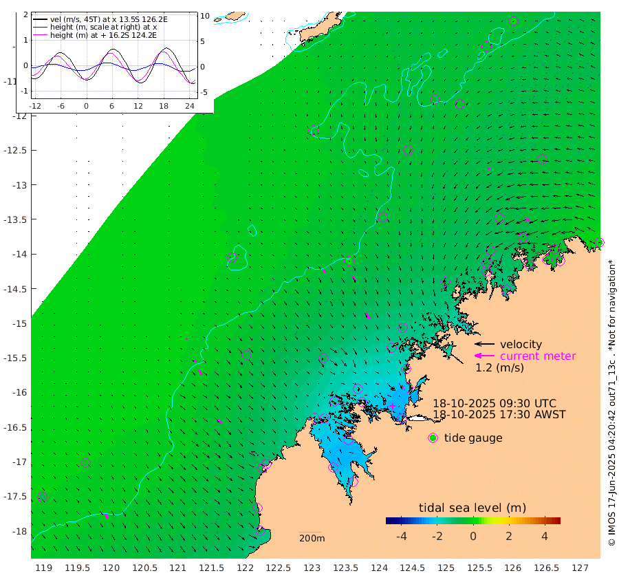 22cm/s 134T +10cm/s rms + 1cm/s 1T. NWSBRW 205m 27cm/s 147T +11cm/s rms + 6cm/s -110T. NWSROW 199m 45cm/s 149T +5cm/s rms + 2cm/s 65T. CAM050 58m 35cm/s 150T +12cm/s rms + 5cm/s 92T. CAM100 99m 8cm/s 138T +7cm/s rms + 1cm/s -85T. KIM400 396m 17cm/s 134T +9cm/s rms + 5cm/s -119T. KIM200 208m 34cm/s 143T +11cm/s rms + 5cm/s -147T. KIM100 99m 34cm/s 139T +8cm/s rms + 3cm/s -103T. KIM050 59m 18cm/s -133T +4cm/s rms + 2cm/s 23T. TIMORS88 91m -87cm Imperieuse Reef -15cm Mermaid Reef -84cm Broome -64cm Cape Baskerville -125cm Red Bluff -78cm Cape Boileau -18cm Scott Reef (WA) -43cm Ashmore Reef -178cm Karrakatta Bay -183cm Sunday Island -230cm Valentine Island -210cm Derby -207cm Port Usborne -175cm Bedford Islands -174cm Yampi Sound (Koolan Island) -172cm Macleay Island -101cm Adele Island 16cm Browse Island -225cm Shale Island -212cm Lizard Island -87cm Hall Point -139cm Degerando Island -93cm White Island -45cm Skua No. 4 Well -41cm Jabiru -75cm Maret Island -62cm Baudin Island -68cm Cape Voltaire (Krait Bay) -50cm Dillon Shoal 0cm Laminaria -91cm Port Warrender -53cm Troughton Island -69cm Cassini Island -41cm West Holothuria Reef Offshore -48cm Jar Island -50cm Lynher Bank -54cm Heywood Shoal -53cm Pee Shoal -43cm Van Cloon Shoal -16cm Carronade Island -13cm Guy Point -28cm Napier Broome Bay 14cm Lesueur Island