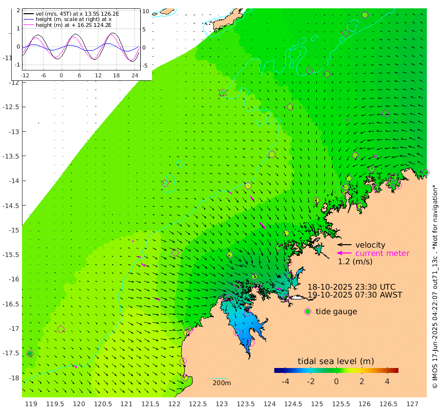 22cm/s 126T +10cm/s rms + 1cm/s 1T. NWSBRW 205m 28cm/s 137T +11cm/s rms + 6cm/s -110T. NWSROW 199m 65cm/s 142T +5cm/s rms + 2cm/s 65T. CAM050 58m 46cm/s 141T +12cm/s rms + 5cm/s 92T. CAM100 99m 11cm/s 115T +7cm/s rms + 1cm/s -85T. KIM400 396m 22cm/s 121T +9cm/s rms + 5cm/s -119T. KIM200 208m 39cm/s 128T +11cm/s rms + 5cm/s -147T. KIM100 99m 47cm/s 106T +8cm/s rms + 3cm/s -103T. KIM050 59m 17cm/s -120T +4cm/s rms + 2cm/s 23T. TIMORS88 91m -32cm Imperieuse Reef 63cm Mermaid Reef 105cm Broome 85cm Cape Baskerville 47cm Red Bluff 88cm Cape Boileau 60cm Scott Reef (WA) 34cm Ashmore Reef -32cm Karrakatta Bay -48cm Sunday Island -217cm Valentine Island -268cm Derby -193cm Port Usborne -4cm Bedford Islands 13cm Yampi Sound (Koolan Island) 62cm Macleay Island 61cm Adele Island 117cm Browse Island -30cm Shale Island -13cm Lizard Island 63cm Hall Point 43cm Degerando Island 76cm White Island 49cm Skua No. 4 Well 31cm Jabiru 76cm Maret Island 73cm Baudin Island 67cm Cape Voltaire (Krait Bay) 16cm Dillon Shoal 49cm Laminaria 60cm Port Warrender 31cm Troughton Island 63cm Cassini Island 58cm West Holothuria Reef Offshore 30cm Jar Island 57cm Lynher Bank 74cm Heywood Shoal 28cm Pee Shoal 15cm Van Cloon Shoal 34cm Carronade Island 43cm Guy Point 42cm Napier Broome Bay -6cm Lesueur Island