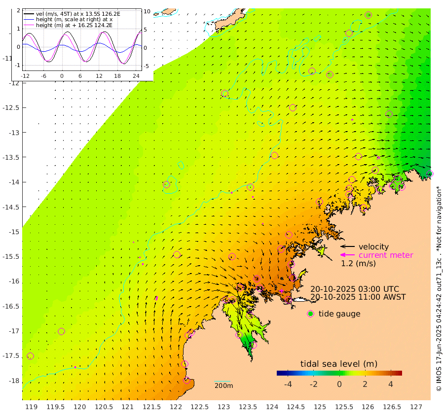 12cm/s -18T +10cm/s rms + 1cm/s 1T. NWSBRW 205m 17cm/s -10T +11cm/s rms + 6cm/s -110T. NWSROW 199m 7cm/s 26T +5cm/s rms + 2cm/s 65T. CAM050 58m 11cm/s 17T +12cm/s rms + 5cm/s 92T. CAM100 99m 6cm/s 24T +7cm/s rms + 1cm/s -85T. KIM400 396m 9cm/s 21T +9cm/s rms + 5cm/s -119T. KIM200 208m 17cm/s 15T +11cm/s rms + 5cm/s -147T. KIM100 99m 35cm/s 18T +8cm/s rms + 3cm/s -103T. KIM050 59m 11cm/s 49T +4cm/s rms + 2cm/s 23T. TIMORS88 91m 107cm Imperieuse Reef 100cm Mermaid Reef 277cm Broome 206cm Cape Baskerville 260cm Red Bluff 207cm Cape Boileau 94cm Scott Reef (WA) 111cm Ashmore Reef 273cm Karrakatta Bay 261cm Sunday Island 136cm Valentine Island 46cm Derby 147cm Port Usborne 312cm Bedford Islands 342cm Yampi Sound (Koolan Island) 379cm Macleay Island 244cm Adele Island 97cm Browse Island 398cm Shale Island 365cm Lizard Island 262cm Hall Point 297cm Degerando Island 265cm White Island 120cm Skua No. 4 Well 73cm Jabiru 220cm Maret Island 196cm Baudin Island 191cm Cape Voltaire (Krait Bay) 88cm Dillon Shoal 55cm Laminaria 219cm Port Warrender 109cm Troughton Island 178cm Cassini Island 122cm West Holothuria Reef Offshore 102cm Jar Island 155cm Lynher Bank 173cm Heywood Shoal 101cm Pee Shoal 56cm Van Cloon Shoal 41cm Carronade Island 46cm Guy Point 43cm Napier Broome Bay -71cm Lesueur Island