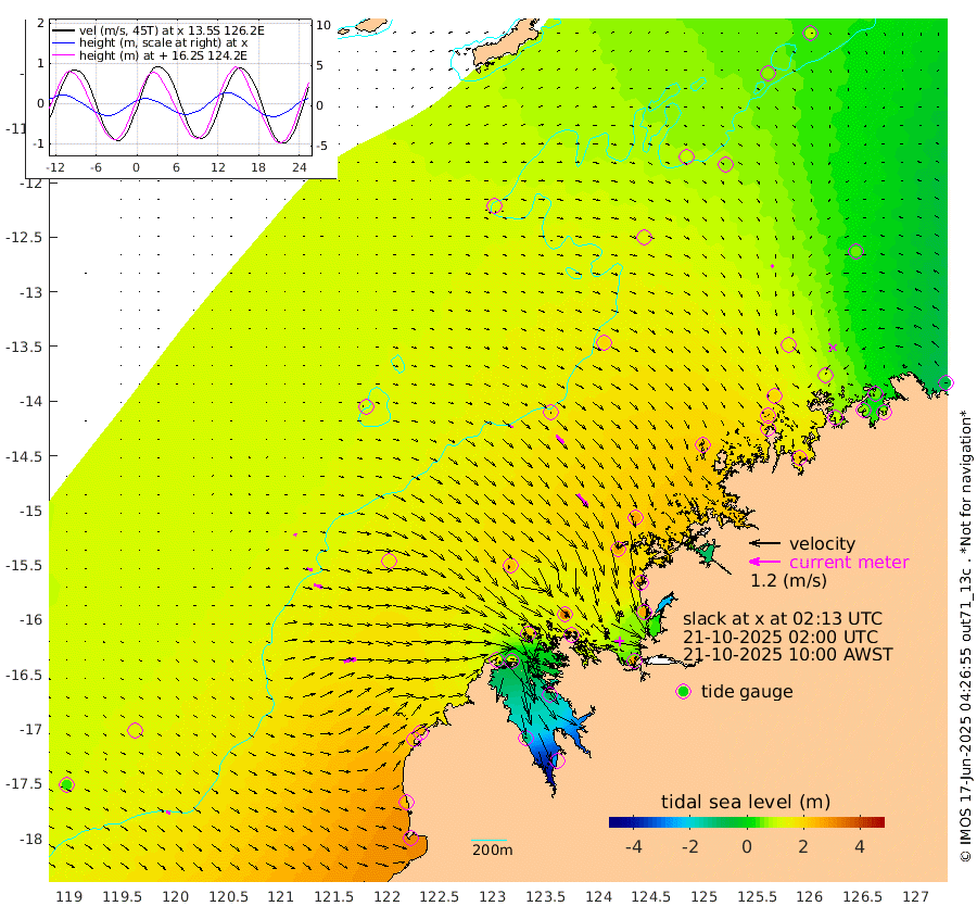 12cm/s 99T +10cm/s rms + 1cm/s 1T. NWSBRW 205m 18cm/s 112T +11cm/s rms + 6cm/s -110T. NWSROW 199m 59cm/s 140T +5cm/s rms + 2cm/s 65T. CAM050 58m 40cm/s 134T +12cm/s rms + 5cm/s 92T. CAM100 99m 11cm/s 94T +7cm/s rms + 1cm/s -85T. KIM400 396m 21cm/s 103T +9cm/s rms + 5cm/s -119T. KIM200 208m 34cm/s 107T +11cm/s rms + 5cm/s -147T. KIM100 99m 50cm/s 77T +8cm/s rms + 3cm/s -103T. KIM050 59m 10cm/s -131T +4cm/s rms + 2cm/s 23T. TIMORS88 91m 42cm Imperieuse Reef 129cm Mermaid Reef 307cm Broome 232cm Cape Baskerville 250cm Red Bluff 228cm Cape Boileau 117cm Scott Reef (WA) 111cm Ashmore Reef 163cm Karrakatta Bay 127cm Sunday Island -134cm Valentine Island -259cm Derby -104cm Port Usborne 222cm Bedford Islands 265cm Yampi Sound (Koolan Island) 320cm Macleay Island 231cm Adele Island 179cm Browse Island 266cm Shale Island 255cm Lizard Island 256cm Hall Point 261cm Degerando Island 268cm White Island 126cm Skua No. 4 Well 65cm Jabiru 237cm Maret Island 215cm Baudin Island 206cm Cape Voltaire (Krait Bay) 64cm Dillon Shoal 76cm Laminaria 220cm Port Warrender 105cm Troughton Island 194cm Cassini Island 140cm West Holothuria Reef Offshore 103cm Jar Island 162cm Lynher Bank 192cm Heywood Shoal 92cm Pee Shoal 46cm Van Cloon Shoal 58cm Carronade Island 64cm Guy Point 62cm Napier Broome Bay -66cm Lesueur Island