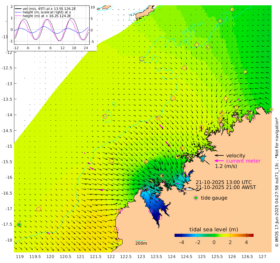 30cm/s 122T +10cm/s rms + 1cm/s 1T. NWSBRW 205m 38cm/s 132T +11cm/s rms + 6cm/s -110T. NWSROW 199m 94cm/s 140T +5cm/s rms + 2cm/s 65T. CAM050 58m 68cm/s 136T +12cm/s rms + 5cm/s 92T. CAM100 99m 15cm/s 110T +7cm/s rms + 1cm/s -85T. KIM400 396m 32cm/s 116T +9cm/s rms + 5cm/s -119T. KIM200 208m 56cm/s 121T +11cm/s rms + 5cm/s -147T. KIM100 99m 65cm/s 100T +8cm/s rms + 3cm/s -103T. KIM050 59m 20cm/s -147T +4cm/s rms + 2cm/s 23T. TIMORS88 91m -4cm Imperieuse Reef 128cm Mermaid Reef 225cm Broome 178cm Cape Baskerville 126cm Red Bluff 167cm Cape Boileau 120cm Scott Reef (WA) 108cm Ashmore Reef 9cm Karrakatta Bay -23cm Sunday Island -308cm Valentine Island -382cm Derby -251cm Port Usborne 67cm Bedford Islands 103cm Yampi Sound (Koolan Island) 154cm Macleay Island 151cm Adele Island 200cm Browse Island 50cm Shale Island 38cm Lizard Island 132cm Hall Point 143cm Degerando Island 179cm White Island 122cm Skua No. 4 Well 76cm Jabiru 189cm Maret Island 178cm Baudin Island 177cm Cape Voltaire (Krait Bay) 70cm Dillon Shoal 108cm Laminaria 169cm Port Warrender 128cm Troughton Island 178cm Cassini Island 148cm West Holothuria Reef Offshore 118cm Jar Island 131cm Lynher Bank 167cm Heywood Shoal 96cm Pee Shoal 77cm Van Cloon Shoal 116cm Carronade Island 123cm Guy Point 115cm Napier Broome Bay 63cm Lesueur Island