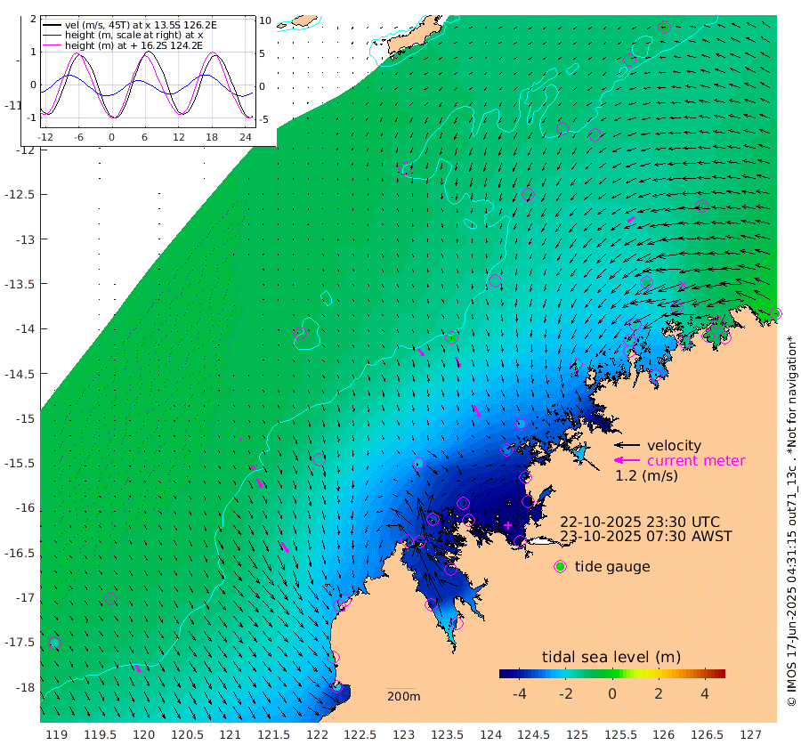 38cm/s 139T +10cm/s rms + 1cm/s 1T. NWSBRW 205m 39cm/s 151T +11cm/s rms + 6cm/s -110T. NWSROW 199m 66cm/s 154T +5cm/s rms + 2cm/s 65T. CAM050 58m 52cm/s 158T +12cm/s rms + 5cm/s 92T. CAM100 99m 10cm/s 154T +7cm/s rms + 1cm/s -85T. KIM400 396m 22cm/s 146T +9cm/s rms + 5cm/s -119T. KIM200 208m 44cm/s 152T +11cm/s rms + 5cm/s -147T. KIM100 99m 55cm/s 146T +8cm/s rms + 3cm/s -103T. KIM050 59m 35cm/s -125T +4cm/s rms + 2cm/s 23T. TIMORS88 91m -161cm Imperieuse Reef -77cm Mermaid Reef -210cm Broome -154cm Cape Baskerville -230cm Red Bluff -151cm Cape Boileau -71cm Scott Reef (WA) -116cm Ashmore Reef -336cm Karrakatta Bay -348cm Sunday Island -378cm Valentine Island -336cm Derby -364cm Port Usborne -335cm Bedford Islands -373cm Yampi Sound (Koolan Island) -364cm Macleay Island -222cm Adele Island -12cm Browse Island -474cm Shale Island -440cm Lizard Island -347cm Hall Point -287cm Degerando Island -248cm White Island -106cm Skua No. 4 Well -114cm Jabiru -183cm Maret Island -176cm Baudin Island -166cm Cape Voltaire (Krait Bay) -114cm Dillon Shoal -58cm Laminaria -211cm Port Warrender -134cm Troughton Island -153cm Cassini Island -120cm West Holothuria Reef Offshore -128cm Jar Island -142cm Lynher Bank -139cm Heywood Shoal -110cm Pee Shoal -91cm Van Cloon Shoal -67cm Carronade Island -70cm Guy Point -62cm Napier Broome Bay -12cm Lesueur Island