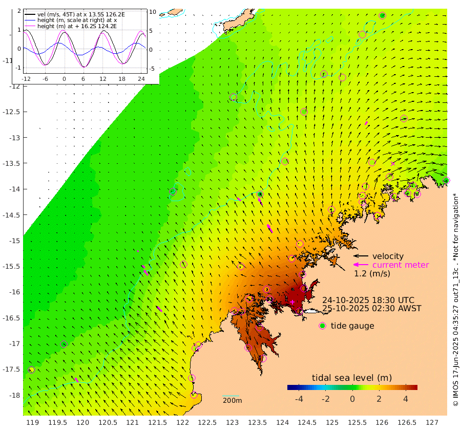 36cm/s -48T +10cm/s rms + 1cm/s 1T. NWSBRW 205m 44cm/s -35T +11cm/s rms + 6cm/s -110T. NWSROW 199m 80cm/s -33T +5cm/s rms + 2cm/s 65T. CAM050 58m 63cm/s -31T +12cm/s rms + 5cm/s 92T. CAM100 99m 13cm/s -42T +7cm/s rms + 1cm/s -85T. KIM400 396m 27cm/s -44T +9cm/s rms + 5cm/s -119T. KIM200 208m 53cm/s -37T +11cm/s rms + 5cm/s -147T. KIM100 99m 60cm/s -45T +8cm/s rms + 3cm/s -103T. KIM050 59m 31cm/s 33T +4cm/s rms + 2cm/s 23T. TIMORS88 91m 139cm Imperieuse Reef 28cm Mermaid Reef 124cm Broome 79cm Cape Baskerville 148cm Red Bluff 92cm Cape Boileau 26cm Scott Reef (WA) 69cm Ashmore Reef 280cm Karrakatta Bay 296cm Sunday Island 399cm Valentine Island 391cm Derby 379cm Port Usborne 247cm Bedford Islands 297cm Yampi Sound (Koolan Island) 286cm Macleay Island 154cm Adele Island -22cm Browse Island 399cm Shale Island 392cm Lizard Island 333cm Hall Point 213cm Degerando Island 180cm White Island 56cm Skua No. 4 Well 100cm Jabiru 111cm Maret Island 108cm Baudin Island 107cm Cape Voltaire (Krait Bay) 82cm Dillon Shoal 4cm Laminaria 154cm Port Warrender 99cm Troughton Island 92cm Cassini Island 77cm West Holothuria Reef Offshore 102cm Jar Island 86cm Lynher Bank 69cm Heywood Shoal 66cm Pee Shoal 72cm Van Cloon Shoal 54cm Carronade Island 50cm Guy Point 57cm Napier Broome Bay 27cm Lesueur Island