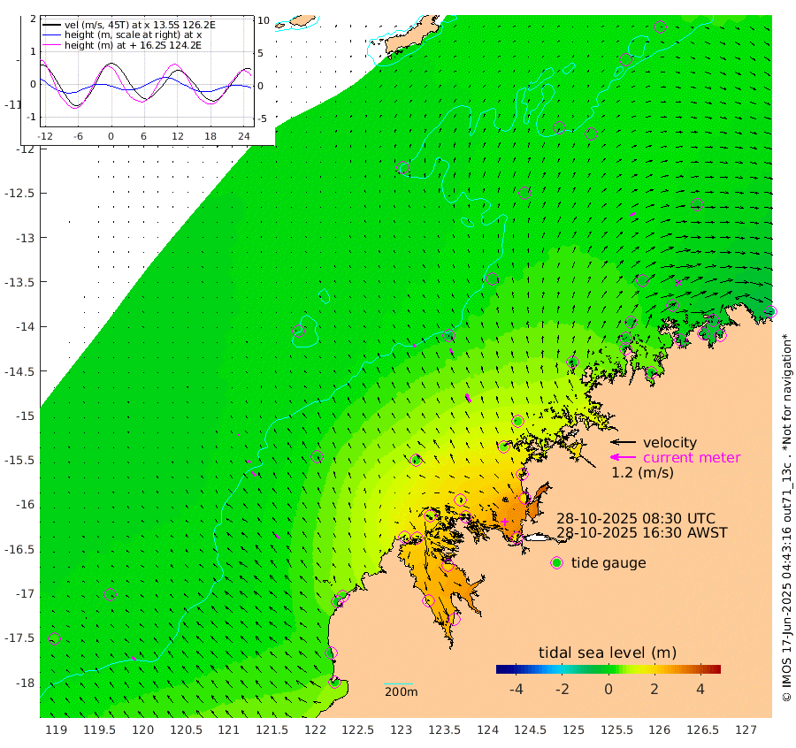 16cm/s -48T +10cm/s rms + 1cm/s 1T. NWSBRW 205m 22cm/s -37T +11cm/s rms + 6cm/s -110T. NWSROW 199m 43cm/s -30T +5cm/s rms + 2cm/s 65T. CAM050 58m 31cm/s -28T +12cm/s rms + 5cm/s 92T. CAM100 99m 5cm/s -35T +7cm/s rms + 1cm/s -85T. KIM400 396m 13cm/s -42T +9cm/s rms + 5cm/s -119T. KIM200 208m 25cm/s -41T +11cm/s rms + 5cm/s -147T. KIM100 99m 28cm/s -51T +8cm/s rms + 3cm/s -103T. KIM050 59m 25cm/s 58T +4cm/s rms + 2cm/s 23T. TIMORS88 91m 43cm Imperieuse Reef -7cm Mermaid Reef 11cm Broome -8cm Cape Baskerville 40cm Red Bluff -18cm Cape Boileau -10cm Scott Reef (WA) 8cm Ashmore Reef 115cm Karrakatta Bay 124cm Sunday Island 210cm Valentine Island 223cm Derby 207cm Port Usborne 84cm Bedford Islands 107cm Yampi Sound (Koolan Island) 115cm Macleay Island 45cm Adele Island -53cm Browse Island 174cm Shale Island 167cm Lizard Island 168cm Hall Point 50cm Degerando Island 39cm White Island -1cm Skua No. 4 Well 13cm Jabiru 4cm Maret Island -2cm Baudin Island -10cm Cape Voltaire (Krait Bay) 11cm Dillon Shoal 1cm Laminaria -10cm Port Warrender -23cm Troughton Island -16cm Cassini Island -15cm West Holothuria Reef Offshore -21cm Jar Island 9cm Lynher Bank -9cm Heywood Shoal 1cm Pee Shoal -25cm Van Cloon Shoal -52cm Carronade Island -55cm Guy Point -61cm Napier Broome Bay -90cm Lesueur Island