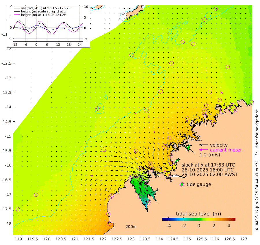 10cm/s -24T +10cm/s rms + 1cm/s 1T. NWSBRW 205m 6cm/s 27T +11cm/s rms + 6cm/s -110T. NWSROW 199m 11cm/s 120T +5cm/s rms + 2cm/s 65T. CAM050 58m 10cm/s 85T +12cm/s rms + 5cm/s 92T. CAM100 99m 4cm/s 54T +7cm/s rms + 1cm/s -85T. KIM400 396m 6cm/s 70T +9cm/s rms + 5cm/s -119T. KIM200 208m 12cm/s 63T +11cm/s rms + 5cm/s -147T. KIM100 99m 22cm/s 38T +8cm/s rms + 3cm/s -103T. KIM050 59m 6cm/s 24T +4cm/s rms + 2cm/s 23T. TIMORS88 91m 93cm Imperieuse Reef 99cm Mermaid Reef 219cm Broome 163cm Cape Baskerville 179cm Red Bluff 168cm Cape Boileau 89cm Scott Reef (WA) 111cm Ashmore Reef 177cm Karrakatta Bay 143cm Sunday Island 23cm Valentine Island -46cm Derby 40cm Port Usborne 186cm Bedford Islands 236cm Yampi Sound (Koolan Island) 216cm Macleay Island 162cm Adele Island 103cm Browse Island 271cm Shale Island 292cm Lizard Island 253cm Hall Point 216cm Degerando Island 210cm White Island 116cm Skua No. 4 Well 120cm Jabiru 187cm Maret Island 178cm Baudin Island 183cm Cape Voltaire (Krait Bay) 85cm Dillon Shoal 73cm Laminaria 197cm Port Warrender 147cm Troughton Island 172cm Cassini Island 133cm West Holothuria Reef Offshore 148cm Jar Island 133cm Lynher Bank 156cm Heywood Shoal 102cm Pee Shoal 101cm Van Cloon Shoal 116cm Carronade Island 116cm Guy Point 127cm Napier Broome Bay 82cm Lesueur Island