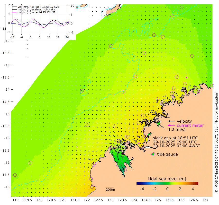 10cm/s -34T +10cm/s rms + 1cm/s 1T. NWSBRW 205m 6cm/s 5T +11cm/s rms + 6cm/s -110T. NWSROW 199m 2cm/s 79T +5cm/s rms + 2cm/s 65T. CAM050 58m 5cm/s 45T +12cm/s rms + 5cm/s 92T. CAM100 99m 3cm/s 39T +7cm/s rms + 1cm/s -85T. KIM400 396m 4cm/s 52T +9cm/s rms + 5cm/s -119T. KIM200 208m 7cm/s 43T +11cm/s rms + 5cm/s -147T. KIM100 99m 14cm/s 25T +8cm/s rms + 3cm/s -103T. KIM050 59m 8cm/s 15T +4cm/s rms + 2cm/s 23T. TIMORS88 91m 73cm Imperieuse Reef 68cm Mermaid Reef 147cm Broome 105cm Cape Baskerville 114cm Red Bluff 114cm Cape Boileau 62cm Scott Reef (WA) 77cm Ashmore Reef 130cm Karrakatta Bay 105cm Sunday Island 41cm Valentine Island -2cm Derby 54cm Port Usborne 126cm Bedford Islands 167cm Yampi Sound (Koolan Island) 149cm Macleay Island 107cm Adele Island 67cm Browse Island 202cm Shale Island 235cm Lizard Island 195cm Hall Point 148cm Degerando Island 145cm White Island 82cm Skua No. 4 Well 98cm Jabiru 125cm Maret Island 118cm Baudin Island 126cm Cape Voltaire (Krait Bay) 62cm Dillon Shoal 52cm Laminaria 133cm Port Warrender 105cm Troughton Island 115cm Cassini Island 91cm West Holothuria Reef Offshore 108cm Jar Island 92cm Lynher Bank 108cm Heywood Shoal 73cm Pee Shoal 75cm Van Cloon Shoal 85cm Carronade Island 85cm Guy Point 97cm Napier Broome Bay 67cm Lesueur Island
