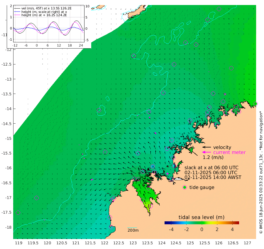5cm/s -78T +10cm/s rms + 1cm/s 1T. NWSBRW 205m 7cm/s -96T +11cm/s rms + 6cm/s -110T. NWSROW 199m 27cm/s -48T +5cm/s rms + 2cm/s 65T. CAM050 58m 19cm/s -56T +12cm/s rms + 5cm/s 92T. CAM100 99m 6cm/s -97T +7cm/s rms + 1cm/s -85T. KIM400 396m 9cm/s -84T +9cm/s rms + 5cm/s -119T. KIM200 208m 14cm/s -87T +11cm/s rms + 5cm/s -147T. KIM100 99m 26cm/s -108T +8cm/s rms + 3cm/s -103T. KIM050 59m 3cm/s -109T +4cm/s rms + 2cm/s 23T. TIMORS88 91m -50cm Imperieuse Reef -81cm Mermaid Reef -176cm Broome -127cm Cape Baskerville -128cm Red Bluff -133cm Cape Boileau -82cm Scott Reef (WA) -87cm Ashmore Reef -118cm Karrakatta Bay -101cm Sunday Island 19cm Valentine Island 63cm Derby -13cm Port Usborne -137cm Bedford Islands -166cm Yampi Sound (Koolan Island) -223cm Macleay Island -155cm Adele Island -112cm Browse Island -178cm Shale Island -194cm Lizard Island -137cm Hall Point -159cm Degerando Island -153cm White Island -102cm Skua No. 4 Well -77cm Jabiru -148cm Maret Island -122cm Baudin Island -132cm Cape Voltaire (Krait Bay) -68cm Dillon Shoal -66cm Laminaria -125cm Port Warrender -90cm Troughton Island -134cm Cassini Island -99cm West Holothuria Reef Offshore -79cm Jar Island -103cm Lynher Bank -120cm Heywood Shoal -88cm Pee Shoal -57cm Van Cloon Shoal -54cm Carronade Island -53cm Guy Point -66cm Napier Broome Bay 12cm Lesueur Island