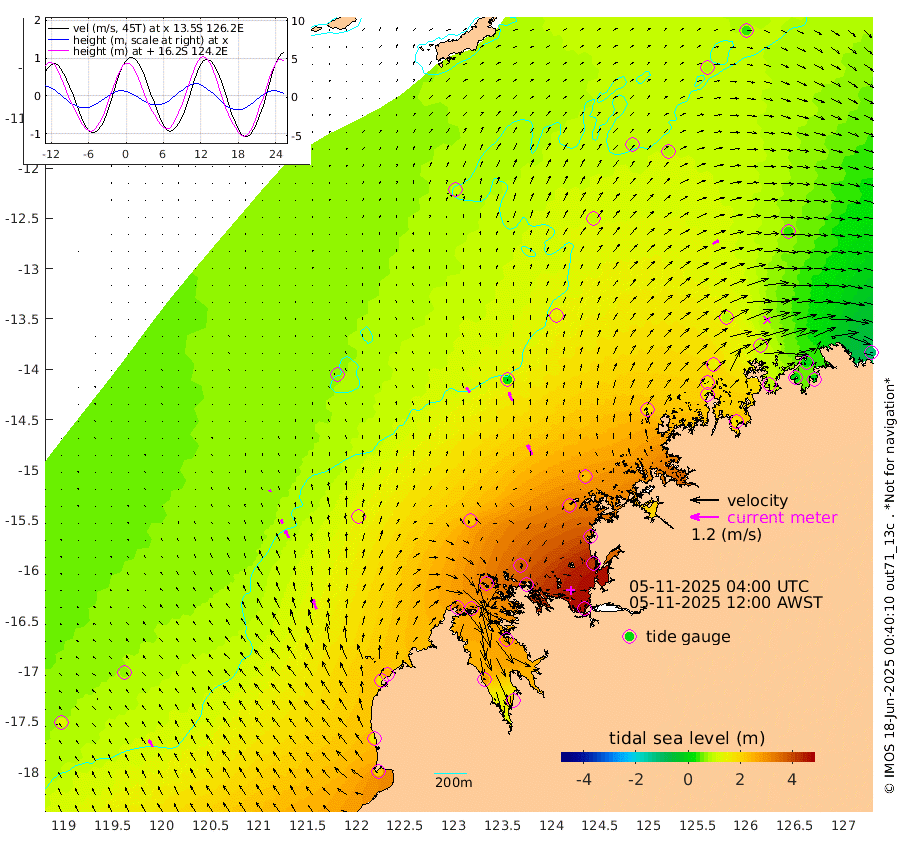 25cm/s -37T +10cm/s rms + 1cm/s 1T. NWSBRW 205m 34cm/s -28T +11cm/s rms + 6cm/s -110T. NWSROW 199m 46cm/s -26T +5cm/s rms + 2cm/s 65T. CAM050 58m 37cm/s -21T +12cm/s rms + 5cm/s 92T. CAM100 99m 9cm/s -19T +7cm/s rms + 1cm/s -85T. KIM400 396m 18cm/s -27T +9cm/s rms + 5cm/s -119T. KIM200 208m 35cm/s -25T +11cm/s rms + 5cm/s -147T. KIM100 99m 46cm/s -21T +8cm/s rms + 3cm/s -103T. KIM050 59m 28cm/s 59T +4cm/s rms + 2cm/s 23T. TIMORS88 91m 132cm Imperieuse Reef 68cm Mermaid Reef 224cm Broome 156cm Cape Baskerville 254cm Red Bluff 155cm Cape Boileau 61cm Scott Reef (WA) 98cm Ashmore Reef 318cm Karrakatta Bay 303cm Sunday Island 280cm Valentine Island 226cm Derby 284cm Port Usborne 316cm Bedford Islands 354cm Yampi Sound (Koolan Island) 369cm Macleay Island 221cm Adele Island 22cm Browse Island 453cm Shale Island 412cm Lizard Island 315cm Hall Point 278cm Degerando Island 229cm White Island 99cm Skua No. 4 Well 78cm Jabiru 179cm Maret Island 153cm Baudin Island 151cm Cape Voltaire (Krait Bay) 88cm Dillon Shoal 38cm Laminaria 171cm Port Warrender 80cm Troughton Island 141cm Cassini Island 87cm West Holothuria Reef Offshore 77cm Jar Island 121cm Lynher Bank 138cm Heywood Shoal 89cm Pee Shoal 39cm Van Cloon Shoal 4cm Carronade Island 3cm Guy Point 3cm Napier Broome Bay -108cm Lesueur Island