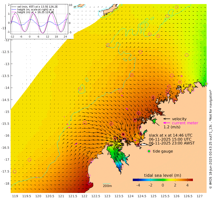 11cm/s 9T +10cm/s rms + 1cm/s 1T. NWSBRW 205m 13cm/s 56T +11cm/s rms + 6cm/s -110T. NWSROW 199m 39cm/s 130T +5cm/s rms + 2cm/s 65T. CAM050 58m 27cm/s 110T +12cm/s rms + 5cm/s 92T. CAM100 99m 10cm/s 68T +7cm/s rms + 1cm/s -85T. KIM400 396m 18cm/s 81T +9cm/s rms + 5cm/s -119T. KIM200 208m 29cm/s 75T +11cm/s rms + 5cm/s -147T. KIM100 99m 50cm/s 50T +8cm/s rms + 3cm/s -103T. KIM050 59m 2cm/s 27T +4cm/s rms + 2cm/s 23T. TIMORS88 91m 153cm Imperieuse Reef 197cm Mermaid Reef 441cm Broome 331cm Cape Baskerville 336cm Red Bluff 328cm Cape Boileau 187cm Scott Reef (WA) 214cm Ashmore Reef 322cm Karrakatta Bay 277cm Sunday Island 26cm Valentine Island -111cm Derby 69cm Port Usborne 389cm Bedford Islands 454cm Yampi Sound (Koolan Island) 498cm Macleay Island 357cm Adele Island 236cm Browse Island 497cm Shale Island 500cm Lizard Island 386cm Hall Point 426cm Degerando Island 408cm White Island 231cm Skua No. 4 Well 183cm Jabiru 378cm Maret Island 340cm Baudin Island 350cm Cape Voltaire (Krait Bay) 158cm Dillon Shoal 141cm Laminaria 375cm Port Warrender 264cm Troughton Island 337cm Cassini Island 253cm West Holothuria Reef Offshore 243cm Jar Island 266cm Lynher Bank 299cm Heywood Shoal 202cm Pee Shoal 160cm Van Cloon Shoal 180cm Carronade Island 183cm Guy Point 186cm Napier Broome Bay 71cm Lesueur Island