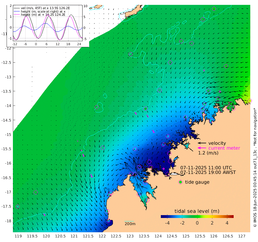 41cm/s 138T +10cm/s rms + 1cm/s 1T. NWSBRW 205m 35cm/s 151T +11cm/s rms + 6cm/s -110T. NWSROW 199m 47cm/s 150T +5cm/s rms + 2cm/s 65T. CAM050 58m 42cm/s 153T +12cm/s rms + 5cm/s 92T. CAM100 99m 9cm/s 159T +7cm/s rms + 1cm/s -85T. KIM400 396m 19cm/s 153T +9cm/s rms + 5cm/s -119T. KIM200 208m 41cm/s 158T +11cm/s rms + 5cm/s -147T. KIM100 99m 49cm/s 155T +8cm/s rms + 3cm/s -103T. KIM050 59m 21cm/s -158T +4cm/s rms + 2cm/s 23T. TIMORS88 91m -135cm Imperieuse Reef -59cm Mermaid Reef -257cm Broome -169cm Cape Baskerville -249cm Red Bluff -172cm Cape Boileau -53cm Scott Reef (WA) -87cm Ashmore Reef -340cm Karrakatta Bay -312cm Sunday Island -283cm Valentine Island -206cm Derby -293cm Port Usborne -345cm Bedford Islands -395cm Yampi Sound (Koolan Island) -414cm Macleay Island -234cm Adele Island -50cm Browse Island -508cm Shale Island -493cm Lizard Island -378cm Hall Point -315cm Degerando Island -265cm White Island -88cm Skua No. 4 Well -81cm Jabiru -198cm Maret Island -171cm Baudin Island -168cm Cape Voltaire (Krait Bay) -56cm Dillon Shoal 3cm Laminaria -195cm Port Warrender -87cm Troughton Island -149cm Cassini Island -84cm West Holothuria Reef Offshore -89cm Jar Island -131cm Lynher Bank -120cm Heywood Shoal -69cm Pee Shoal -28cm Van Cloon Shoal -3cm Carronade Island 6cm Guy Point -5cm Napier Broome Bay 109cm Lesueur Island