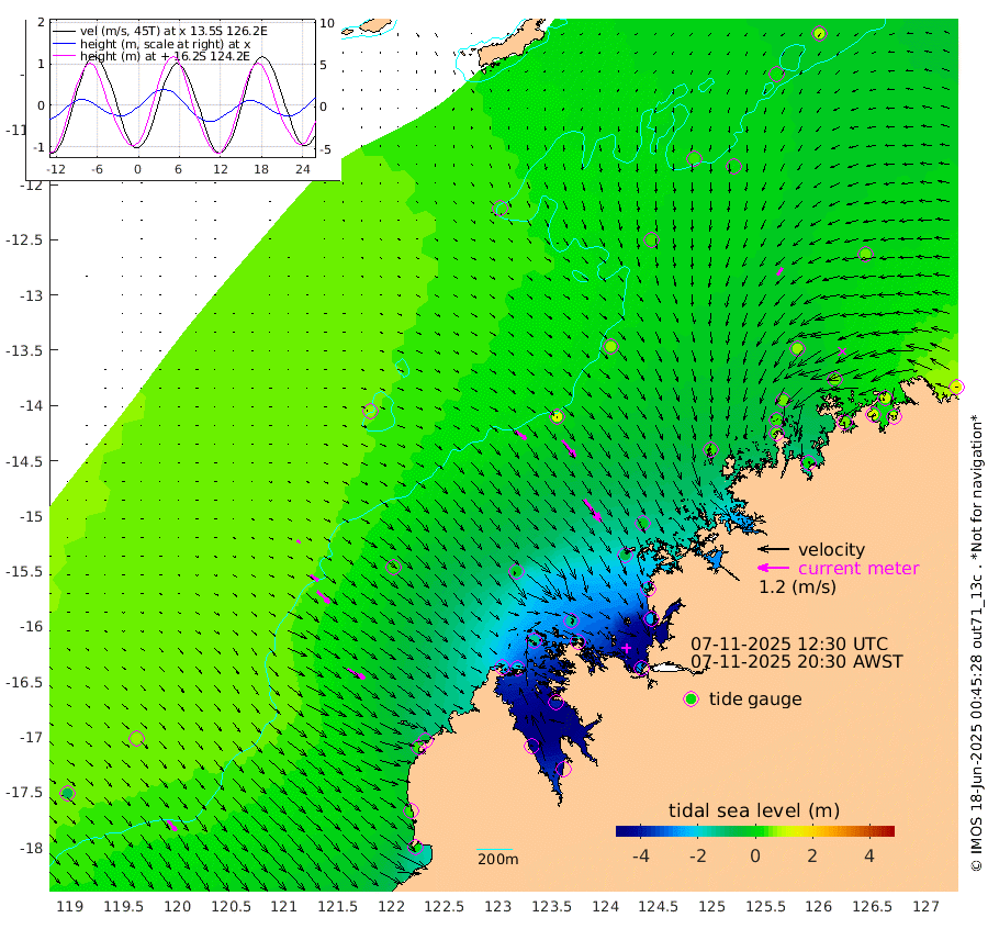50cm/s 128T +10cm/s rms + 1cm/s 1T. NWSBRW 205m 52cm/s 141T +11cm/s rms + 6cm/s -110T. NWSROW 199m 107cm/s 143T +5cm/s rms + 2cm/s 65T. CAM050 58m 81cm/s 141T +12cm/s rms + 5cm/s 92T. CAM100 99m 15cm/s 126T +7cm/s rms + 1cm/s -85T. KIM400 396m 36cm/s 127T +9cm/s rms + 5cm/s -119T. KIM200 208m 67cm/s 134T +11cm/s rms + 5cm/s -147T. KIM100 99m 75cm/s 118T +8cm/s rms + 3cm/s -103T. KIM050 59m 33cm/s -146T +4cm/s rms + 2cm/s 23T. TIMORS88 91m -80cm Imperieuse Reef 69cm Mermaid Reef 28cm Broome 44cm Cape Baskerville -52cm Red Bluff 40cm Cape Boileau 66cm Scott Reef (WA) 32cm Ashmore Reef -204cm Karrakatta Bay -210cm Sunday Island -425cm Valentine Island -445cm Derby -389cm Port Usborne -147cm Bedford Islands -157cm Yampi Sound (Koolan Island) -147cm Macleay Island -29cm Adele Island 130cm Browse Island -274cm Shale Island -250cm Lizard Island -177cm Hall Point -71cm Degerando Island -17cm White Island 45cm Skua No. 4 Well 10cm Jabiru 34cm Maret Island 38cm Baudin Island 48cm Cape Voltaire (Krait Bay) 16cm Dillon Shoal 86cm Laminaria 29cm Port Warrender 55cm Troughton Island 53cm Cassini Island 66cm West Holothuria Reef Offshore 47cm Jar Island 33cm Lynher Bank 68cm Heywood Shoal 36cm Pee Shoal 51cm Van Cloon Shoal 102cm Carronade Island 115cm Guy Point 104cm Napier Broome Bay 135cm Lesueur Island