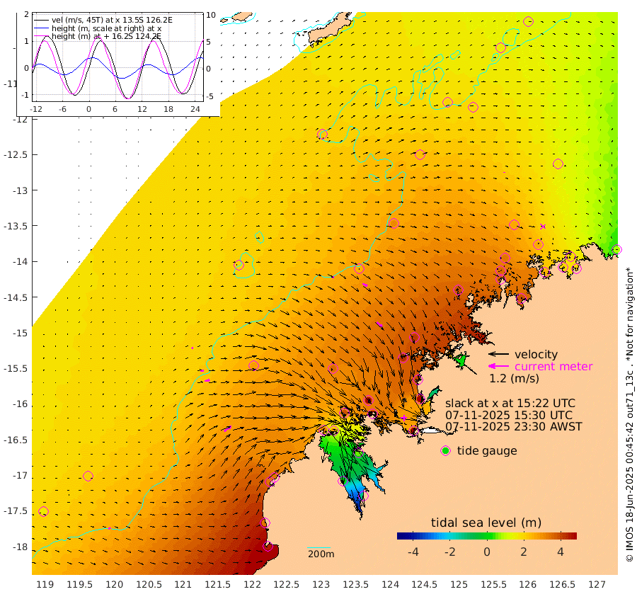 10cm/s 15T +10cm/s rms + 1cm/s 1T. NWSBRW 205m 14cm/s 65T +11cm/s rms + 6cm/s -110T. NWSROW 199m 43cm/s 131T +5cm/s rms + 2cm/s 65T. CAM050 58m 30cm/s 112T +12cm/s rms + 5cm/s 92T. CAM100 99m 10cm/s 71T +7cm/s rms + 1cm/s -85T. KIM400 396m 19cm/s 85T +9cm/s rms + 5cm/s -119T. KIM200 208m 31cm/s 80T +11cm/s rms + 5cm/s -147T. KIM100 99m 52cm/s 53T +8cm/s rms + 3cm/s -103T. KIM050 59m 1cm/s 10T +4cm/s rms + 2cm/s 23T. TIMORS88 91m 154cm Imperieuse Reef 204cm Mermaid Reef 450cm Broome 337cm Cape Baskerville 340cm Red Bluff 338cm Cape Boileau 193cm Scott Reef (WA) 217cm Ashmore Reef 317cm Karrakatta Bay 275cm Sunday Island 1cm Valentine Island -135cm Derby 50cm Port Usborne 387cm Bedford Islands 457cm Yampi Sound (Koolan Island) 491cm Macleay Island 357cm Adele Island 242cm Browse Island 495cm Shale Island 507cm Lizard Island 403cm Hall Point 432cm Degerando Island 419cm White Island 233cm Skua No. 4 Well 191cm Jabiru 383cm Maret Island 346cm Baudin Island 360cm Cape Voltaire (Krait Bay) 163cm Dillon Shoal 147cm Laminaria 388cm Port Warrender 270cm Troughton Island 342cm Cassini Island 260cm West Holothuria Reef Offshore 253cm Jar Island 274cm Lynher Bank 311cm Heywood Shoal 204cm Pee Shoal 168cm Van Cloon Shoal 194cm Carronade Island 199cm Guy Point 202cm Napier Broome Bay 87cm Lesueur Island