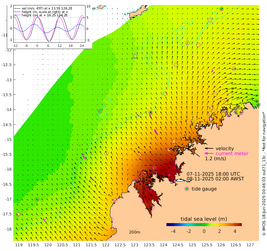 44cm/s -47T +10cm/s rms + 1cm/s 1T. NWSBRW 205m 52cm/s -34T +11cm/s rms + 6cm/s -110T. NWSROW 199m 91cm/s -32T +5cm/s rms + 2cm/s 65T. CAM050 58m 72cm/s -30T +12cm/s rms + 5cm/s 92T. CAM100 99m 15cm/s -41T +7cm/s rms + 1cm/s -85T. KIM400 396m 32cm/s -42T +9cm/s rms + 5cm/s -119T. KIM200 208m 62cm/s -35T +11cm/s rms + 5cm/s -147T. KIM100 99m 70cm/s -44T +8cm/s rms + 3cm/s -103T. KIM050 59m 37cm/s 33T +4cm/s rms + 2cm/s 23T. TIMORS88 91m 177cm Imperieuse Reef 38cm Mermaid Reef 163cm Broome 109cm Cape Baskerville 184cm Red Bluff 119cm Cape Boileau 40cm Scott Reef (WA) 96cm Ashmore Reef 346cm Karrakatta Bay 340cm Sunday Island 483cm Valentine Island 453cm Derby 453cm Port Usborne 311cm Bedford Islands 356cm Yampi Sound (Koolan Island) 356cm Macleay Island 193cm Adele Island -11cm Browse Island 484cm Shale Island 481cm Lizard Island 350cm Hall Point 264cm Degerando Island 207cm White Island 91cm Skua No. 4 Well 123cm Jabiru 153cm Maret Island 135cm Baudin Island 142cm Cape Voltaire (Krait Bay) 101cm Dillon Shoal 11cm Laminaria 183cm Port Warrender 136cm Troughton Island 134cm Cassini Island 94cm West Holothuria Reef Offshore 124cm Jar Island 105cm Lynher Bank 94cm Heywood Shoal 100cm Pee Shoal 89cm Van Cloon Shoal 61cm Carronade Island 53cm Guy Point 66cm Napier Broome Bay 24cm Lesueur Island