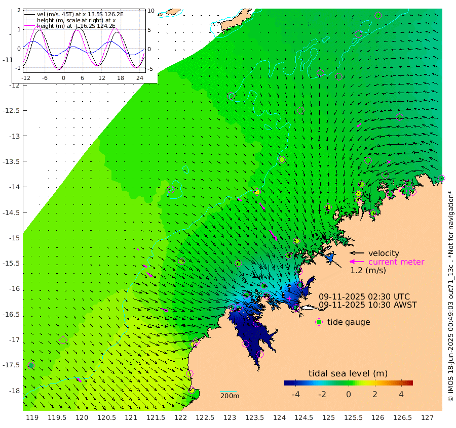 34cm/s 125T +10cm/s rms + 1cm/s 1T. NWSBRW 205m 44cm/s 138T +11cm/s rms + 6cm/s -110T. NWSROW 199m 103cm/s 146T +5cm/s rms + 2cm/s 65T. CAM050 58m 73cm/s 144T +12cm/s rms + 5cm/s 92T. CAM100 99m 15cm/s 122T +7cm/s rms + 1cm/s -85T. KIM400 396m 34cm/s 121T +9cm/s rms + 5cm/s -119T. KIM200 208m 61cm/s 128T +11cm/s rms + 5cm/s -147T. KIM100 99m 68cm/s 109T +8cm/s rms + 3cm/s -103T. KIM050 59m 42cm/s -130T +4cm/s rms + 2cm/s 23T. TIMORS88 91m -88cm Imperieuse Reef 55cm Mermaid Reef 137cm Broome 100cm Cape Baskerville 58cm Red Bluff 88cm Cape Boileau 42cm Scott Reef (WA) 2cm Ashmore Reef -107cm Karrakatta Bay -146cm Sunday Island -450cm Valentine Island -533cm Derby -394cm Port Usborne -30cm Bedford Islands -18cm Yampi Sound (Koolan Island) -1cm Macleay Island 34cm Adele Island 147cm Browse Island -93cm Shale Island -93cm Lizard Island -12cm Hall Point 38cm Degerando Island 76cm White Island 13cm Skua No. 4 Well -44cm Jabiru 81cm Maret Island 75cm Baudin Island 67cm Cape Voltaire (Krait Bay) -54cm Dillon Shoal 6cm Laminaria 52cm Port Warrender -17cm Troughton Island 54cm Cassini Island 26cm West Holothuria Reef Offshore -2cm Jar Island 47cm Lynher Bank 60cm Heywood Shoal -26cm Pee Shoal -44cm Van Cloon Shoal -3cm Carronade Island -2cm Guy Point -9cm Napier Broome Bay -69cm Lesueur Island