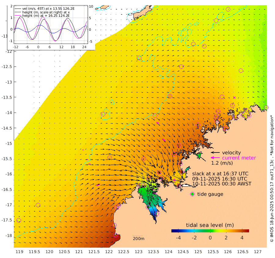 8cm/s 32T +10cm/s rms + 1cm/s 1T. NWSBRW 205m 13cm/s 85T +11cm/s rms + 6cm/s -110T. NWSROW 199m 45cm/s 133T +5cm/s rms + 2cm/s 65T. CAM050 58m 32cm/s 117T +12cm/s rms + 5cm/s 92T. CAM100 99m 10cm/s 78T +7cm/s rms + 1cm/s -85T. KIM400 396m 19cm/s 94T +9cm/s rms + 5cm/s -119T. KIM200 208m 30cm/s 91T +11cm/s rms + 5cm/s -147T. KIM100 99m 48cm/s 60T +8cm/s rms + 3cm/s -103T. KIM050 59m 1cm/s -90T +4cm/s rms + 2cm/s 23T. TIMORS88 91m 126cm Imperieuse Reef 183cm Mermaid Reef 392cm Broome 292cm Cape Baskerville 294cm Red Bluff 301cm Cape Boileau 171cm Scott Reef (WA) 187cm Ashmore Reef 253cm Karrakatta Bay 224cm Sunday Island -59cm Valentine Island -169cm Derby -4cm Port Usborne 313cm Bedford Islands 384cm Yampi Sound (Koolan Island) 392cm Macleay Island 297cm Adele Island 214cm Browse Island 407cm Shale Island 429cm Lizard Island 384cm Hall Point 368cm Degerando Island 369cm White Island 198cm Skua No. 4 Well 177cm Jabiru 329cm Maret Island 303cm Baudin Island 317cm Cape Voltaire (Krait Bay) 143cm Dillon Shoal 134cm Laminaria 344cm Port Warrender 234cm Troughton Island 293cm Cassini Island 232cm West Holothuria Reef Offshore 230cm Jar Island 243cm Lynher Bank 280cm Heywood Shoal 172cm Pee Shoal 155cm Van Cloon Shoal 188cm Carronade Island 195cm Guy Point 200cm Napier Broome Bay 101cm Lesueur Island