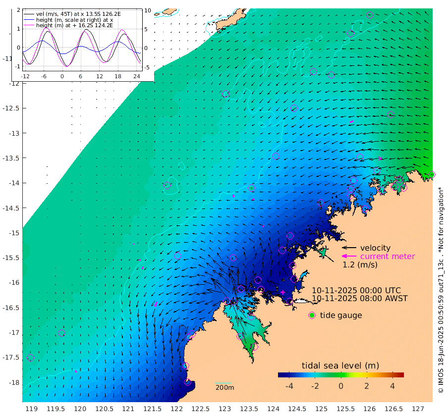 22cm/s 157T +10cm/s rms + 1cm/s 1T. NWSBRW 205m 18cm/s 173T +11cm/s rms + 6cm/s -110T. NWSROW 199m 17cm/s -140T +5cm/s rms + 2cm/s 65T. CAM050 58m 21cm/s -143T +12cm/s rms + 5cm/s 92T. CAM100 99m 7cm/s -140T +7cm/s rms + 1cm/s -85T. KIM400 396m 12cm/s -150T +9cm/s rms + 5cm/s -119T. KIM200 208m 22cm/s -158T +11cm/s rms + 5cm/s -147T. KIM100 99m 41cm/s -160T +8cm/s rms + 3cm/s -103T. KIM050 59m 29cm/s -116T +4cm/s rms + 2cm/s 23T. TIMORS88 91m -158cm Imperieuse Reef -153cm Mermaid Reef -343cm Broome -248cm Cape Baskerville -298cm Red Bluff -247cm Cape Boileau -141cm Scott Reef (WA) -173cm Ashmore Reef -339cm Karrakatta Bay -328cm Sunday Island -168cm Valentine Island -86cm Derby -207cm Port Usborne -373cm Bedford Islands -428cm Yampi Sound (Koolan Island) -434cm Macleay Island -296cm Adele Island -121cm Browse Island -509cm Shale Island -513cm Lizard Island -428cm Hall Point -367cm Degerando Island -341cm White Island -175cm Skua No. 4 Well -165cm Jabiru -286cm Maret Island -260cm Baudin Island -260cm Cape Voltaire (Krait Bay) -137cm Dillon Shoal -125cm Laminaria -282cm Port Warrender -181cm Troughton Island -239cm Cassini Island -183cm West Holothuria Reef Offshore -176cm Jar Island -222cm Lynher Bank -235cm Heywood Shoal -158cm Pee Shoal -118cm Van Cloon Shoal -111cm Carronade Island -115cm Guy Point -115cm Napier Broome Bay -13cm Lesueur Island