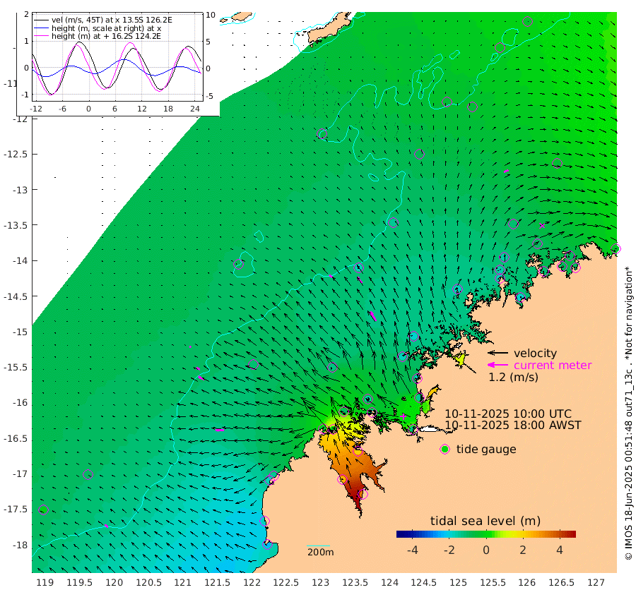 20cm/s -57T +10cm/s rms + 1cm/s 1T. NWSBRW 205m 23cm/s -52T +11cm/s rms + 6cm/s -110T. NWSROW 199m 64cm/s -32T +5cm/s rms + 2cm/s 65T. CAM050 58m 44cm/s -38T +12cm/s rms + 5cm/s 92T. CAM100 99m 9cm/s -72T +7cm/s rms + 1cm/s -85T. KIM400 396m 22cm/s -66T +9cm/s rms + 5cm/s -119T. KIM200 208m 39cm/s -61T +11cm/s rms + 5cm/s -147T. KIM100 99m 45cm/s -90T +8cm/s rms + 3cm/s -103T. KIM050 59m 29cm/s 66T +4cm/s rms + 2cm/s 23T. TIMORS88 91m -9cm Imperieuse Reef -94cm Mermaid Reef -228cm Broome -166cm Cape Baskerville -141cm Red Bluff -172cm Cape Boileau -83cm Scott Reef (WA) -70cm Ashmore Reef -44cm Karrakatta Bay -7cm Sunday Island 251cm Valentine Island 338cm Derby 204cm Port Usborne -99cm Bedford Islands -148cm Yampi Sound (Koolan Island) -150cm Macleay Island -129cm Adele Island -166cm Browse Island -121cm Shale Island -137cm Lizard Island -180cm Hall Point -172cm Degerando Island -195cm White Island -79cm Skua No. 4 Well -56cm Jabiru -174cm Maret Island -163cm Baudin Island -171cm Cape Voltaire (Krait Bay) -30cm Dillon Shoal -36cm Laminaria -185cm Port Warrender -100cm Troughton Island -150cm Cassini Island -112cm West Holothuria Reef Offshore -110cm Jar Island -116cm Lynher Bank -142cm Heywood Shoal -49cm Pee Shoal -49cm Van Cloon Shoal -96cm Carronade Island -99cm Guy Point -100cm Napier Broome Bay -37cm Lesueur Island