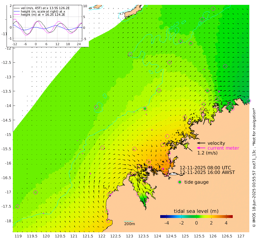 9cm/s -32T +10cm/s rms + 1cm/s 1T. NWSBRW 205m 11cm/s -15T +11cm/s rms + 6cm/s -110T. NWSROW 199m 9cm/s -8T +5cm/s rms + 2cm/s 65T. CAM050 58m 9cm/s 7T +12cm/s rms + 5cm/s 92T. CAM100 99m 4cm/s 48T +7cm/s rms + 1cm/s -85T. KIM400 396m 7cm/s 27T +9cm/s rms + 5cm/s -119T. KIM200 208m 11cm/s 17T +11cm/s rms + 5cm/s -147T. KIM100 99m 19cm/s 10T +8cm/s rms + 3cm/s -103T. KIM050 59m 15cm/s 49T +4cm/s rms + 2cm/s 23T. TIMORS88 91m 56cm Imperieuse Reef 52cm Mermaid Reef 143cm Broome 93cm Cape Baskerville 109cm Red Bluff 76cm Cape Boileau 45cm Scott Reef (WA) 52cm Ashmore Reef 152cm Karrakatta Bay 146cm Sunday Island 109cm Valentine Island 60cm Derby 126cm Port Usborne 175cm Bedford Islands 198cm Yampi Sound (Koolan Island) 217cm Macleay Island 126cm Adele Island 40cm Browse Island 255cm Shale Island 262cm Lizard Island 215cm Hall Point 155cm Degerando Island 146cm White Island 52cm Skua No. 4 Well 40cm Jabiru 107cm Maret Island 90cm Baudin Island 83cm Cape Voltaire (Krait Bay) 21cm Dillon Shoal 33cm Laminaria 89cm Port Warrender 34cm Troughton Island 67cm Cassini Island 42cm West Holothuria Reef Offshore 31cm Jar Island 88cm Lynher Bank 66cm Heywood Shoal 36cm Pee Shoal -3cm Van Cloon Shoal -12cm Carronade Island -12cm Guy Point -23cm Napier Broome Bay -76cm Lesueur Island