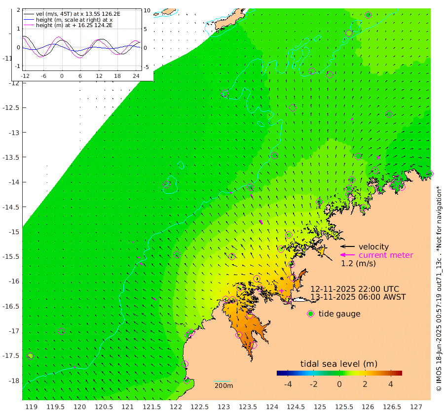 18cm/s -52T +10cm/s rms + 1cm/s 1T. NWSBRW 205m 20cm/s -38T +11cm/s rms + 6cm/s -110T. NWSROW 199m 39cm/s -30T +5cm/s rms + 2cm/s 65T. CAM050 58m 32cm/s -31T +12cm/s rms + 5cm/s 92T. CAM100 99m 6cm/s -42T +7cm/s rms + 1cm/s -85T. KIM400 396m 13cm/s -46T +9cm/s rms + 5cm/s -119T. KIM200 208m 26cm/s -39T +11cm/s rms + 5cm/s -147T. KIM100 99m 27cm/s -47T +8cm/s rms + 3cm/s -103T. KIM050 59m 19cm/s 23T +4cm/s rms + 2cm/s 23T. TIMORS88 91m 64cm Imperieuse Reef 4cm Mermaid Reef 29cm Broome 16cm Cape Baskerville 22cm Red Bluff 31cm Cape Boileau 14cm Scott Reef (WA) 21cm Ashmore Reef 122cm Karrakatta Bay 139cm Sunday Island 231cm Valentine Island 243cm Derby 222cm Port Usborne 103cm Bedford Islands 110cm Yampi Sound (Koolan Island) 145cm Macleay Island 64cm Adele Island -15cm Browse Island 160cm Shale Island 165cm Lizard Island 51cm Hall Point 74cm Degerando Island 50cm White Island 30cm Skua No. 4 Well 40cm Jabiru 26cm Maret Island 15cm Baudin Island 26cm Cape Voltaire (Krait Bay) 46cm Dillon Shoal 4cm Laminaria 36cm Port Warrender 31cm Troughton Island 21cm Cassini Island 18cm West Holothuria Reef Offshore 20cm Jar Island 28cm Lynher Bank 22cm Heywood Shoal 34cm Pee Shoal 22cm Van Cloon Shoal 2cm Carronade Island 7cm Guy Point 9cm Napier Broome Bay -15cm Lesueur Island