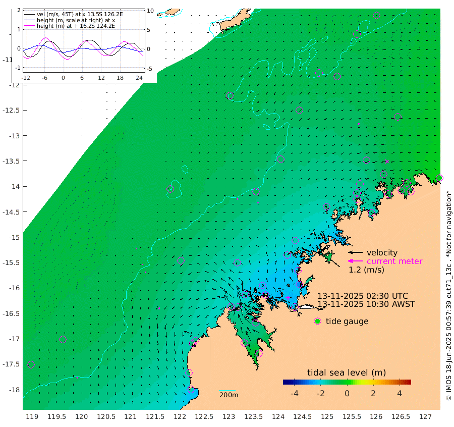 12cm/s 153T +10cm/s rms + 1cm/s 1T. NWSBRW 205m 8cm/s -177T +11cm/s rms + 6cm/s -110T. NWSROW 199m 9cm/s -131T +5cm/s rms + 2cm/s 65T. CAM050 58m 9cm/s -136T +12cm/s rms + 5cm/s 92T. CAM100 99m 4cm/s -119T +7cm/s rms + 1cm/s -85T. KIM400 396m 5cm/s -139T +9cm/s rms + 5cm/s -119T. KIM200 208m 10cm/s -152T +11cm/s rms + 5cm/s -147T. KIM100 99m 17cm/s -151T +8cm/s rms + 3cm/s -103T. KIM050 59m 18cm/s -128T +4cm/s rms + 2cm/s 23T. TIMORS88 91m -75cm Imperieuse Reef -76cm Mermaid Reef -155cm Broome -111cm Cape Baskerville -122cm Red Bluff -112cm Cape Boileau -73cm Scott Reef (WA) -83cm Ashmore Reef -155cm Karrakatta Bay -158cm Sunday Island -104cm Valentine Island -62cm Derby -115cm Port Usborne -168cm Bedford Islands -197cm Yampi Sound (Koolan Island) -212cm Macleay Island -141cm Adele Island -65cm Browse Island -237cm Shale Island -271cm Lizard Island -223cm Hall Point -165cm Degerando Island -164cm White Island -85cm Skua No. 4 Well -90cm Jabiru -130cm Maret Island -119cm Baudin Island -118cm Cape Voltaire (Krait Bay) -64cm Dillon Shoal -69cm Laminaria -131cm Port Warrender -90cm Troughton Island -106cm Cassini Island -91cm West Holothuria Reef Offshore -86cm Jar Island -112cm Lynher Bank -104cm Heywood Shoal -79cm Pee Shoal -63cm Van Cloon Shoal -60cm Carronade Island -62cm Guy Point -65cm Napier Broome Bay -23cm Lesueur Island