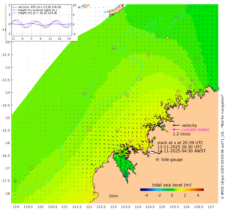 2cm/s 14T +10cm/s rms + 1cm/s 1T. NWSBRW 205m 3cm/s 82T +11cm/s rms + 6cm/s -110T. NWSROW 199m 11cm/s 140T +5cm/s rms + 2cm/s 65T. CAM050 58m 7cm/s 120T +12cm/s rms + 5cm/s 92T. CAM100 99m 3cm/s 79T +7cm/s rms + 1cm/s -85T. KIM400 396m 5cm/s 96T +9cm/s rms + 5cm/s -119T. KIM200 208m 8cm/s 101T +11cm/s rms + 5cm/s -147T. KIM100 99m 15cm/s 62T +8cm/s rms + 3cm/s -103T. KIM050 59m 8cm/s -9T +4cm/s rms + 2cm/s 23T. TIMORS88 91m 36cm Imperieuse Reef 53cm Mermaid Reef 115cm Broome 81cm Cape Baskerville 78cm Red Bluff 94cm Cape Boileau 50cm Scott Reef (WA) 46cm Ashmore Reef 85cm Karrakatta Bay 84cm Sunday Island 1cm Valentine Island -29cm Derby 20cm Port Usborne 87cm Bedford Islands 123cm Yampi Sound (Koolan Island) 134cm Macleay Island 88cm Adele Island 63cm Browse Island 141cm Shale Island 166cm Lizard Island 171cm Hall Point 109cm Degerando Island 121cm White Island 51cm Skua No. 4 Well 63cm Jabiru 86cm Maret Island 86cm Baudin Island 86cm Cape Voltaire (Krait Bay) 42cm Dillon Shoal 36cm Laminaria 97cm Port Warrender 57cm Troughton Island 70cm Cassini Island 65cm West Holothuria Reef Offshore 64cm Jar Island 74cm Lynher Bank 78cm Heywood Shoal 40cm Pee Shoal 41cm Van Cloon Shoal 50cm Carronade Island 56cm Guy Point 61cm Napier Broome Bay 20cm Lesueur Island