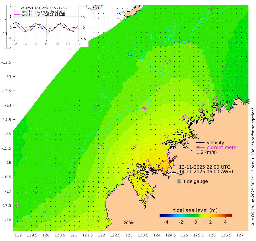 7cm/s -42T +10cm/s rms + 1cm/s 1T. NWSBRW 205m 9cm/s -25T +11cm/s rms + 6cm/s -110T. NWSROW 199m 11cm/s -14T +5cm/s rms + 2cm/s 65T. CAM050 58m 11cm/s -16T +12cm/s rms + 5cm/s 92T. CAM100 99m 3cm/s 11T +7cm/s rms + 1cm/s -85T. KIM400 396m 4cm/s -6T +9cm/s rms + 5cm/s -119T. KIM200 208m 9cm/s -12T +11cm/s rms + 5cm/s -147T. KIM100 99m 13cm/s 3T +8cm/s rms + 3cm/s -103T. KIM050 59m 12cm/s 13T +4cm/s rms + 2cm/s 23T. TIMORS88 91m 50cm Imperieuse Reef 36cm Mermaid Reef 88cm Broome 62cm Cape Baskerville 61cm Red Bluff 75cm Cape Boileau 40cm Scott Reef (WA) 39cm Ashmore Reef 112cm Karrakatta Bay 122cm Sunday Island 115cm Valentine Island 99cm Derby 121cm Port Usborne 112cm Bedford Islands 130cm Yampi Sound (Koolan Island) 168cm Macleay Island 93cm Adele Island 35cm Browse Island 162cm Shale Island 173cm Lizard Island 97cm Hall Point 105cm Degerando Island 97cm White Island 49cm Skua No. 4 Well 49cm Jabiru 68cm Maret Island 59cm Baudin Island 63cm Cape Voltaire (Krait Bay) 48cm Dillon Shoal 25cm Laminaria 73cm Port Warrender 44cm Troughton Island 53cm Cassini Island 45cm West Holothuria Reef Offshore 39cm Jar Island 60cm Lynher Bank 60cm Heywood Shoal 42cm Pee Shoal 28cm Van Cloon Shoal 19cm Carronade Island 26cm Guy Point 27cm Napier Broome Bay -17cm Lesueur Island