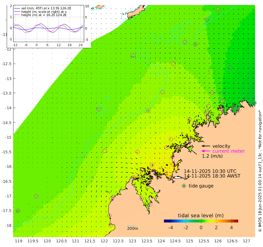 2cm/s 32T +10cm/s rms + 1cm/s 1T. NWSBRW 205m 5cm/s 19T +11cm/s rms + 6cm/s -110T. NWSROW 199m 8cm/s 83T +5cm/s rms + 2cm/s 65T. CAM050 58m 8cm/s 76T +12cm/s rms + 5cm/s 92T. CAM100 99m 4cm/s 74T +7cm/s rms + 1cm/s -85T. KIM400 396m 6cm/s 65T +9cm/s rms + 5cm/s -119T. KIM200 208m 9cm/s 55T +11cm/s rms + 5cm/s -147T. KIM100 99m 13cm/s 45T +8cm/s rms + 3cm/s -103T. KIM050 59m 9cm/s 59T +4cm/s rms + 2cm/s 23T. TIMORS88 91m 43cm Imperieuse Reef 55cm Mermaid Reef 107cm Broome 77cm Cape Baskerville 64cm Red Bluff 64cm Cape Boileau 56cm Scott Reef (WA) 58cm Ashmore Reef 95cm Karrakatta Bay 99cm Sunday Island 83cm Valentine Island 48cm Derby 91cm Port Usborne 123cm Bedford Islands 133cm Yampi Sound (Koolan Island) 178cm Macleay Island 111cm Adele Island 57cm Browse Island 156cm Shale Island 172cm Lizard Island 85cm Hall Point 110cm Degerando Island 107cm White Island 65cm Skua No. 4 Well 38cm Jabiru 94cm Maret Island 72cm Baudin Island 77cm Cape Voltaire (Krait Bay) 38cm Dillon Shoal 53cm Laminaria 79cm Port Warrender 56cm Troughton Island 72cm Cassini Island 56cm West Holothuria Reef Offshore 39cm Jar Island 79cm Lynher Bank 65cm Heywood Shoal 58cm Pee Shoal 23cm Van Cloon Shoal 17cm Carronade Island 20cm Guy Point 10cm Napier Broome Bay -23cm Lesueur Island