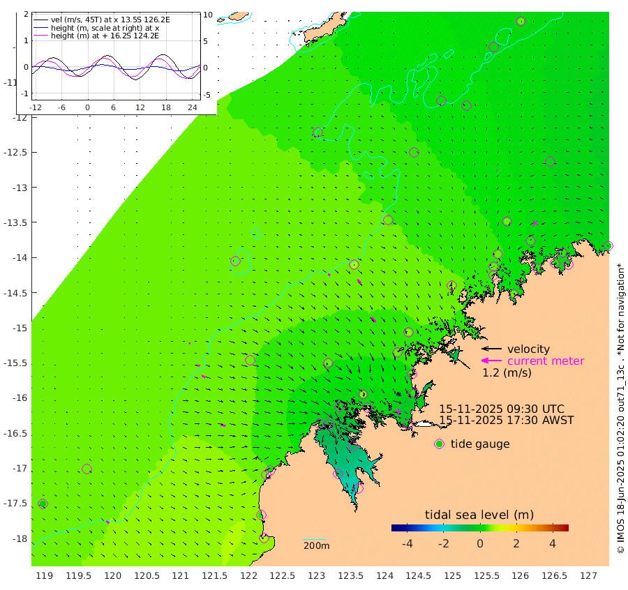 14cm/s 125T +10cm/s rms + 1cm/s 1T. NWSBRW 205m 17cm/s 133T +11cm/s rms + 6cm/s -110T. NWSROW 199m 38cm/s 140T +5cm/s rms + 2cm/s 65T. CAM050 58m 29cm/s 136T +12cm/s rms + 5cm/s 92T. CAM100 99m 7cm/s 110T +7cm/s rms + 1cm/s -85T. KIM400 396m 15cm/s 114T +9cm/s rms + 5cm/s -119T. KIM200 208m 26cm/s 122T +11cm/s rms + 5cm/s -147T. KIM100 99m 28cm/s 102T +8cm/s rms + 3cm/s -103T. KIM050 59m 4cm/s -137T +4cm/s rms + 2cm/s 23T. TIMORS88 91m -8cm Imperieuse Reef 54cm Mermaid Reef 81cm Broome 58cm Cape Baskerville 19cm Red Bluff 43cm Cape Boileau 49cm Scott Reef (WA) 38cm Ashmore Reef -10cm Karrakatta Bay -16cm Sunday Island -115cm Valentine Island -142cm Derby -84cm Port Usborne 16cm Bedford Islands 39cm Yampi Sound (Koolan Island) 63cm Macleay Island 54cm Adele Island 78cm Browse Island 27cm Shale Island 38cm Lizard Island 68cm Hall Point 45cm Degerando Island 73cm White Island 41cm Skua No. 4 Well 22cm Jabiru 65cm Maret Island 60cm Baudin Island 59cm Cape Voltaire (Krait Bay) 17cm Dillon Shoal 53cm Laminaria 52cm Port Warrender 39cm Troughton Island 52cm Cassini Island 49cm West Holothuria Reef Offshore 35cm Jar Island 56cm Lynher Bank 54cm Heywood Shoal 28cm Pee Shoal 13cm Van Cloon Shoal 33cm Carronade Island 38cm Guy Point 24cm Napier Broome Bay 12cm Lesueur Island