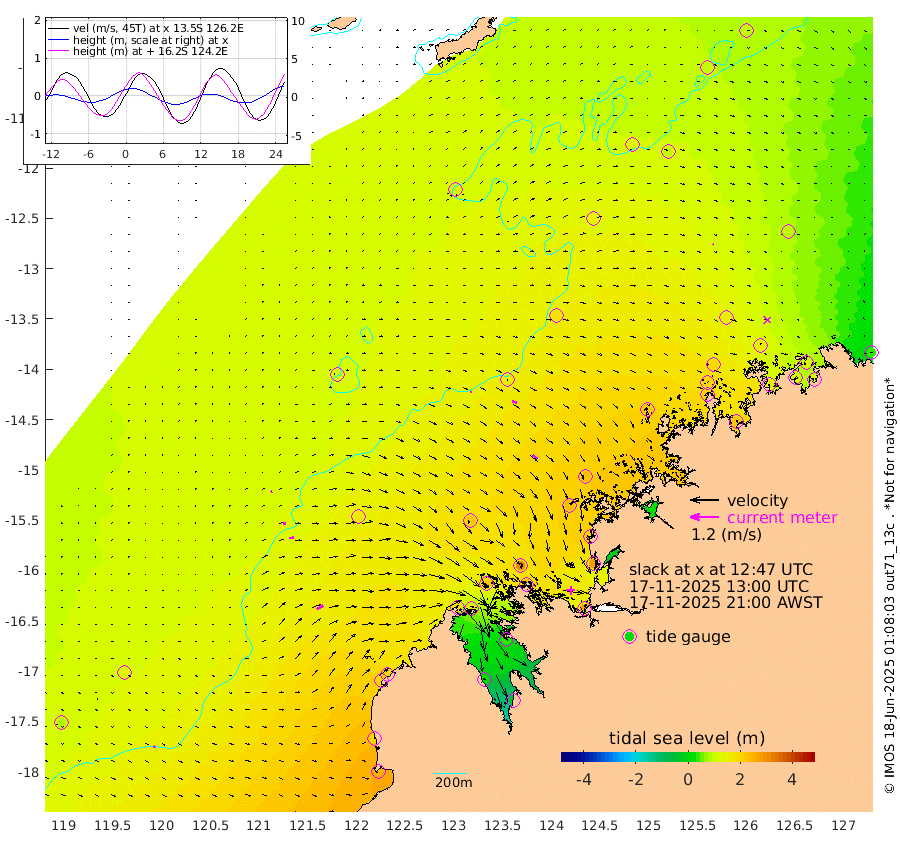 6cm/s 64T +10cm/s rms + 1cm/s 1T. NWSBRW 205m 9cm/s 75T +11cm/s rms + 6cm/s -110T. NWSROW 199m 28cm/s 130T +5cm/s rms + 2cm/s 65T. CAM050 58m 21cm/s 116T +12cm/s rms + 5cm/s 92T. CAM100 99m 7cm/s 77T +7cm/s rms + 1cm/s -85T. KIM400 396m 12cm/s 91T +9cm/s rms + 5cm/s -119T. KIM200 208m 20cm/s 83T +11cm/s rms + 5cm/s -147T. KIM100 99m 31cm/s 59T +8cm/s rms + 3cm/s -103T. KIM050 59m 2cm/s 150T +4cm/s rms + 2cm/s 23T. TIMORS88 91m 81cm Imperieuse Reef 121cm Mermaid Reef 251cm Broome 188cm Cape Baskerville 182cm Red Bluff 185cm Cape Boileau 118cm Scott Reef (WA) 129cm Ashmore Reef 169cm Karrakatta Bay 163cm Sunday Island 17cm Valentine Island -51cm Derby 45cm Port Usborne 217cm Bedford Islands 256cm Yampi Sound (Koolan Island) 309cm Macleay Island 220cm Adele Island 148cm Browse Island 267cm Shale Island 274cm Lizard Island 208cm Hall Point 239cm Degerando Island 240cm White Island 138cm Skua No. 4 Well 101cm Jabiru 220cm Maret Island 193cm Baudin Island 201cm Cape Voltaire (Krait Bay) 101cm Dillon Shoal 97cm Laminaria 219cm Port Warrender 154cm Troughton Island 194cm Cassini Island 156cm West Holothuria Reef Offshore 136cm Jar Island 161cm Lynher Bank 174cm Heywood Shoal 126cm Pee Shoal 96cm Van Cloon Shoal 108cm Carronade Island 112cm Guy Point 108cm Napier Broome Bay 38cm Lesueur Island