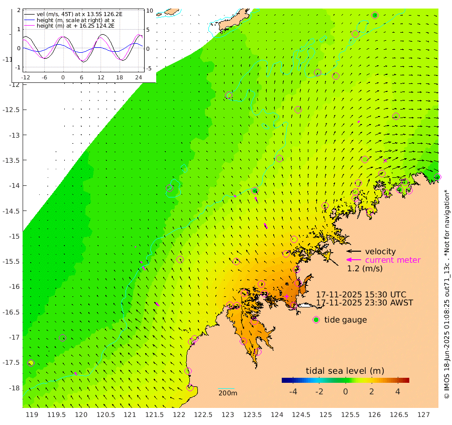 22cm/s -45T +10cm/s rms + 1cm/s 1T. NWSBRW 205m 29cm/s -31T +11cm/s rms + 6cm/s -110T. NWSROW 199m 49cm/s -30T +5cm/s rms + 2cm/s 65T. CAM050 58m 38cm/s -27T +12cm/s rms + 5cm/s 92T. CAM100 99m 8cm/s -40T +7cm/s rms + 1cm/s -85T. KIM400 396m 17cm/s -41T +9cm/s rms + 5cm/s -119T. KIM200 208m 35cm/s -33T +11cm/s rms + 5cm/s -147T. KIM100 99m 38cm/s -42T +8cm/s rms + 3cm/s -103T. KIM050 59m 17cm/s 45T +4cm/s rms + 2cm/s 23T. TIMORS88 91m 107cm Imperieuse Reef 31cm Mermaid Reef 112cm Broome 76cm Cape Baskerville 120cm Red Bluff 87cm Cape Boileau 36cm Scott Reef (WA) 66cm Ashmore Reef 197cm Karrakatta Bay 210cm Sunday Island 271cm Valentine Island 256cm Derby 258cm Port Usborne 205cm Bedford Islands 218cm Yampi Sound (Koolan Island) 223cm Macleay Island 132cm Adele Island 7cm Browse Island 274cm Shale Island 288cm Lizard Island 169cm Hall Point 173cm Degerando Island 132cm White Island 63cm Skua No. 4 Well 71cm Jabiru 109cm Maret Island 84cm Baudin Island 101cm Cape Voltaire (Krait Bay) 64cm Dillon Shoal 14cm Laminaria 132cm Port Warrender 91cm Troughton Island 95cm Cassini Island 67cm West Holothuria Reef Offshore 78cm Jar Island 79cm Lynher Bank 70cm Heywood Shoal 75cm Pee Shoal 65cm Van Cloon Shoal 49cm Carronade Island 43cm Guy Point 54cm Napier Broome Bay 21cm Lesueur Island