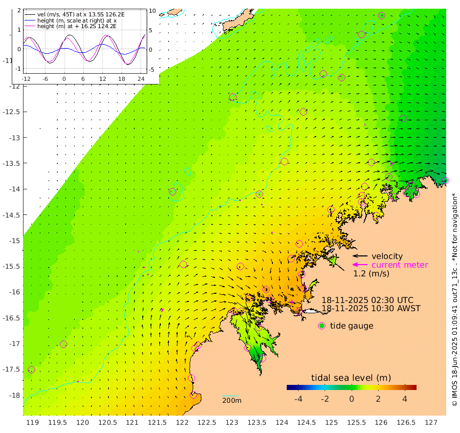 10cm/s -16T +10cm/s rms + 1cm/s 1T. NWSBRW 205m 13cm/s -11T +11cm/s rms + 6cm/s -110T. NWSROW 199m 6cm/s 12T +5cm/s rms + 2cm/s 65T. CAM050 58m 9cm/s 10T +12cm/s rms + 5cm/s 92T. CAM100 99m 4cm/s 30T +7cm/s rms + 1cm/s -85T. KIM400 396m 7cm/s 22T +9cm/s rms + 5cm/s -119T. KIM200 208m 13cm/s 16T +11cm/s rms + 5cm/s -147T. KIM100 99m 26cm/s 15T +8cm/s rms + 3cm/s -103T. KIM050 59m 8cm/s 69T +4cm/s rms + 2cm/s 23T. TIMORS88 91m 73cm Imperieuse Reef 71cm Mermaid Reef 207cm Broome 155cm Cape Baskerville 205cm Red Bluff 150cm Cape Boileau 65cm Scott Reef (WA) 74cm Ashmore Reef 211cm Karrakatta Bay 203cm Sunday Island 121cm Valentine Island 43cm Derby 118cm Port Usborne 243cm Bedford Islands 262cm Yampi Sound (Koolan Island) 298cm Macleay Island 186cm Adele Island 64cm Browse Island 306cm Shale Island 280cm Lizard Island 224cm Hall Point 221cm Degerando Island 198cm White Island 81cm Skua No. 4 Well 54cm Jabiru 159cm Maret Island 140cm Baudin Island 130cm Cape Voltaire (Krait Bay) 54cm Dillon Shoal 36cm Laminaria 152cm Port Warrender 59cm Troughton Island 119cm Cassini Island 77cm West Holothuria Reef Offshore 54cm Jar Island 112cm Lynher Bank 121cm Heywood Shoal 65cm Pee Shoal 20cm Van Cloon Shoal 1cm Carronade Island 7cm Guy Point -1cm Napier Broome Bay -98cm Lesueur Island