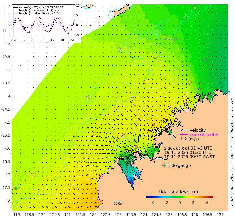 10cm/s 101T +10cm/s rms + 1cm/s 1T. NWSBRW 205m 15cm/s 115T +11cm/s rms + 6cm/s -110T. NWSROW 199m 48cm/s 141T +5cm/s rms + 2cm/s 65T. CAM050 58m 33cm/s 136T +12cm/s rms + 5cm/s 92T. CAM100 99m 9cm/s 96T +7cm/s rms + 1cm/s -85T. KIM400 396m 18cm/s 106T +9cm/s rms + 5cm/s -119T. KIM200 208m 28cm/s 108T +11cm/s rms + 5cm/s -147T. KIM100 99m 39cm/s 78T +8cm/s rms + 3cm/s -103T. KIM050 59m 12cm/s -139T +4cm/s rms + 2cm/s 23T. TIMORS88 91m 18cm Imperieuse Reef 92cm Mermaid Reef 234cm Broome 174cm Cape Baskerville 193cm Red Bluff 166cm Cape Boileau 82cm Scott Reef (WA) 72cm Ashmore Reef 117cm Karrakatta Bay 85cm Sunday Island -115cm Valentine Island -220cm Derby -96cm Port Usborne 163cm Bedford Islands 199cm Yampi Sound (Koolan Island) 249cm Macleay Island 174cm Adele Island 135cm Browse Island 199cm Shale Island 195cm Lizard Island 200cm Hall Point 191cm Degerando Island 202cm White Island 85cm Skua No. 4 Well 39cm Jabiru 173cm Maret Island 153cm Baudin Island 144cm Cape Voltaire (Krait Bay) 32cm Dillon Shoal 48cm Laminaria 151cm Port Warrender 54cm Troughton Island 133cm Cassini Island 90cm West Holothuria Reef Offshore 55cm Jar Island 116cm Lynher Bank 137cm Heywood Shoal 54cm Pee Shoal 9cm Van Cloon Shoal 14cm Carronade Island 19cm Guy Point 14cm Napier Broome Bay -99cm Lesueur Island
