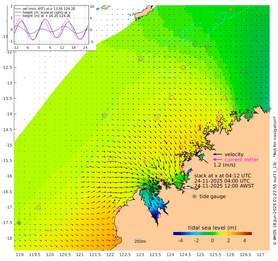7cm/s 86T +10cm/s rms + 1cm/s 1T. NWSBRW 205m 15cm/s 116T +11cm/s rms + 6cm/s -110T. NWSROW 199m 50cm/s 141T +5cm/s rms + 2cm/s 65T. CAM050 58m 35cm/s 134T +12cm/s rms + 5cm/s 92T. CAM100 99m 9cm/s 98T +7cm/s rms + 1cm/s -85T. KIM400 396m 19cm/s 105T +9cm/s rms + 5cm/s -119T. KIM200 208m 30cm/s 108T +11cm/s rms + 5cm/s -147T. KIM100 99m 38cm/s 78T +8cm/s rms + 3cm/s -103T. KIM050 59m 10cm/s -152T +4cm/s rms + 2cm/s 23T. TIMORS88 91m 19cm Imperieuse Reef 90cm Mermaid Reef 245cm Broome 167cm Cape Baskerville 187cm Red Bluff 153cm Cape Boileau 74cm Scott Reef (WA) 73cm Ashmore Reef 115cm Karrakatta Bay 67cm Sunday Island -191cm Valentine Island -269cm Derby -122cm Port Usborne 160cm Bedford Islands 205cm Yampi Sound (Koolan Island) 222cm Macleay Island 160cm Adele Island 130cm Browse Island 220cm Shale Island 195cm Lizard Island 251cm Hall Point 199cm Degerando Island 200cm White Island 79cm Skua No. 4 Well 43cm Jabiru 177cm Maret Island 156cm Baudin Island 150cm Cape Voltaire (Krait Bay) 20cm Dillon Shoal 42cm Laminaria 136cm Port Warrender 46cm Troughton Island 135cm Cassini Island 78cm West Holothuria Reef Offshore 56cm Jar Island 113cm Lynher Bank 134cm Heywood Shoal 40cm Pee Shoal -5cm Van Cloon Shoal 8cm Carronade Island 5cm Guy Point 2cm Napier Broome Bay -105cm Lesueur Island