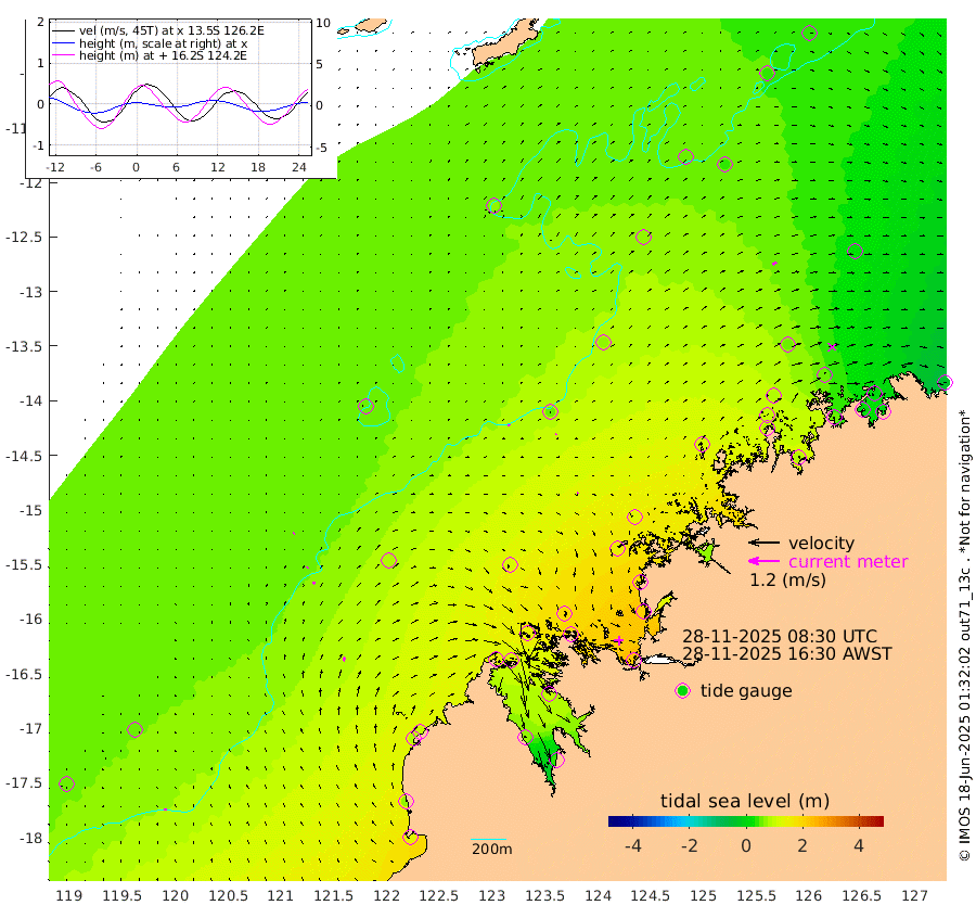 6cm/s -29T +10cm/s rms + 1cm/s 1T. NWSBRW 205m 8cm/s -7T +11cm/s rms + 6cm/s -110T. NWSROW 199m 5cm/s 32T +5cm/s rms + 2cm/s 65T. CAM050 58m 6cm/s 40T +12cm/s rms + 5cm/s 92T. CAM100 99m 4cm/s 52T +7cm/s rms + 1cm/s -85T. KIM400 396m 6cm/s 40T +9cm/s rms + 5cm/s -119T. KIM200 208m 9cm/s 31T +11cm/s rms + 5cm/s -147T. KIM100 99m 16cm/s 22T +8cm/s rms + 3cm/s -103T. KIM050 59m 15cm/s 51T +4cm/s rms + 2cm/s 23T. TIMORS88 91m 54cm Imperieuse Reef 55cm Mermaid Reef 133cm Broome 89cm Cape Baskerville 99cm Red Bluff 71cm Cape Boileau 47cm Scott Reef (WA) 63cm Ashmore Reef 140cm Karrakatta Bay 121cm Sunday Island 65cm Valentine Island 35cm Derby 98cm Port Usborne 145cm Bedford Islands 172cm Yampi Sound (Koolan Island) 193cm Macleay Island 118cm Adele Island 49cm Browse Island 224cm Shale Island 199cm Lizard Island 168cm Hall Point 138cm Degerando Island 129cm White Island 63cm Skua No. 4 Well 43cm Jabiru 105cm Maret Island 98cm Baudin Island 86cm Cape Voltaire (Krait Bay) 39cm Dillon Shoal 45cm Laminaria 77cm Port Warrender 52cm Troughton Island 84cm Cassini Island 55cm West Holothuria Reef Offshore 48cm Jar Island 78cm Lynher Bank 70cm Heywood Shoal 48cm Pee Shoal 15cm Van Cloon Shoal 7cm Carronade Island 4cm Guy Point -1cm Napier Broome Bay -41cm Lesueur Island