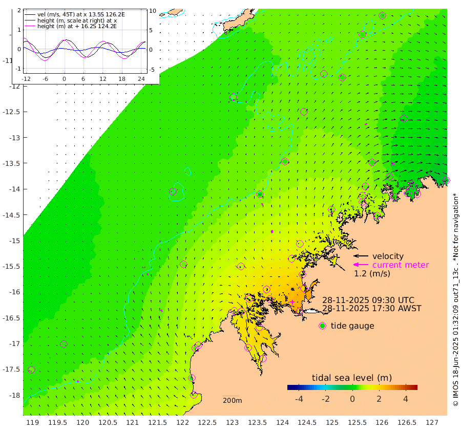 9cm/s -43T +10cm/s rms + 1cm/s 1T. NWSBRW 205m 15cm/s -26T +11cm/s rms + 6cm/s -110T. NWSROW 199m 22cm/s -17T +5cm/s rms + 2cm/s 65T. CAM050 58m 16cm/s -12T +12cm/s rms + 5cm/s 92T. CAM100 99m 3cm/s 6T +7cm/s rms + 1cm/s -85T. KIM400 396m 8cm/s -18T +9cm/s rms + 5cm/s -119T. KIM200 208m 15cm/s -19T +11cm/s rms + 5cm/s -147T. KIM100 99m 18cm/s -20T +8cm/s rms + 3cm/s -103T. KIM050 59m 20cm/s 55T +4cm/s rms + 2cm/s 23T. TIMORS88 91m 58cm Imperieuse Reef 34cm Mermaid Reef 83cm Broome 54cm Cape Baskerville 75cm Red Bluff 39cm Cape Boileau 31cm Scott Reef (WA) 52cm Ashmore Reef 139cm Karrakatta Bay 134cm Sunday Island 152cm Valentine Island 142cm Derby 165cm Port Usborne 128cm Bedford Islands 149cm Yampi Sound (Koolan Island) 178cm Macleay Island 101cm Adele Island 14cm Browse Island 204cm Shale Island 181cm Lizard Island 127cm Hall Point 106cm Degerando Island 94cm White Island 50cm Skua No. 4 Well 34cm Jabiru 72cm Maret Island 65cm Baudin Island 54cm Cape Voltaire (Krait Bay) 42cm Dillon Shoal 37cm Laminaria 51cm Port Warrender 41cm Troughton Island 58cm Cassini Island 41cm West Holothuria Reef Offshore 32cm Jar Island 54cm Lynher Bank 43cm Heywood Shoal 46cm Pee Shoal 17cm Van Cloon Shoal -3cm Carronade Island -6cm Guy Point -10cm Napier Broome Bay -39cm Lesueur Island