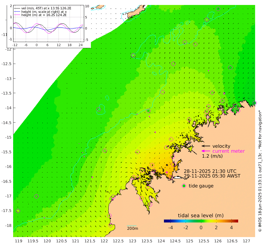 10cm/s -44T +10cm/s rms + 1cm/s 1T. NWSBRW 205m 12cm/s -29T +11cm/s rms + 6cm/s -110T. NWSROW 199m 16cm/s -26T +5cm/s rms + 2cm/s 65T. CAM050 58m 15cm/s -25T +12cm/s rms + 5cm/s 92T. CAM100 99m 3cm/s -10T +7cm/s rms + 1cm/s -85T. KIM400 396m 6cm/s -24T +9cm/s rms + 5cm/s -119T. KIM200 208m 13cm/s -22T +11cm/s rms + 5cm/s -147T. KIM100 99m 16cm/s -12T +8cm/s rms + 3cm/s -103T. KIM050 59m 14cm/s 23T +4cm/s rms + 2cm/s 23T. TIMORS88 91m 63cm Imperieuse Reef 34cm Mermaid Reef 99cm Broome 67cm Cape Baskerville 87cm Red Bluff 77cm Cape Boileau 36cm Scott Reef (WA) 46cm Ashmore Reef 138cm Karrakatta Bay 124cm Sunday Island 139cm Valentine Island 109cm Derby 137cm Port Usborne 119cm Bedford Islands 152cm Yampi Sound (Koolan Island) 180cm Macleay Island 100cm Adele Island 31cm Browse Island 203cm Shale Island 217cm Lizard Island 117cm Hall Point 118cm Degerando Island 105cm White Island 58cm Skua No. 4 Well 47cm Jabiru 79cm Maret Island 65cm Baudin Island 73cm Cape Voltaire (Krait Bay) 49cm Dillon Shoal 22cm Laminaria 77cm Port Warrender 52cm Troughton Island 68cm Cassini Island 48cm West Holothuria Reef Offshore 47cm Jar Island 55cm Lynher Bank 67cm Heywood Shoal 49cm Pee Shoal 29cm Van Cloon Shoal 17cm Carronade Island 18cm Guy Point 25cm Napier Broome Bay -30cm Lesueur Island