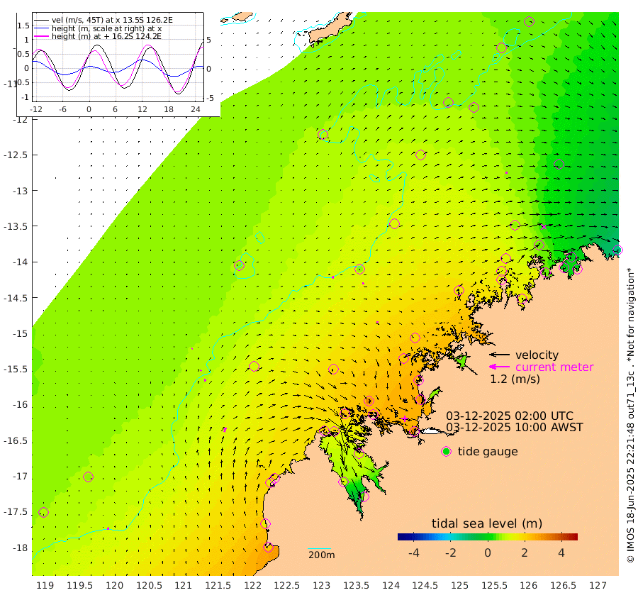 13cm/s -18T +10cm/s rms + 1cm/s 1T. NWSBRW 205m 14cm/s -9T +11cm/s rms + 6cm/s -110T. NWSROW 199m 6cm/s 17T +5cm/s rms + 2cm/s 65T. CAM050 58m 9cm/s 14T +12cm/s rms + 5cm/s 92T. CAM100 99m 5cm/s 34T +7cm/s rms + 1cm/s -85T. KIM400 396m 7cm/s 26T +9cm/s rms + 5cm/s -119T. KIM200 208m 14cm/s 14T +11cm/s rms + 5cm/s -147T. KIM100 99m 27cm/s 15T +8cm/s rms + 3cm/s -103T. KIM050 59m 13cm/s 79T +4cm/s rms + 2cm/s 23T. TIMORS88 91m 78cm Imperieuse Reef 73cm Mermaid Reef 212cm Broome 149cm Cape Baskerville 204cm Red Bluff 147cm Cape Boileau 69cm Scott Reef (WA) 82cm Ashmore Reef 221cm Karrakatta Bay 201cm Sunday Island 105cm Valentine Island 47cm Derby 128cm Port Usborne 240cm Bedford Islands 267cm Yampi Sound (Koolan Island) 312cm Macleay Island 193cm Adele Island 66cm Browse Island 320cm Shale Island 292cm Lizard Island 227cm Hall Point 222cm Degerando Island 192cm White Island 94cm Skua No. 4 Well 67cm Jabiru 163cm Maret Island 134cm Baudin Island 132cm Cape Voltaire (Krait Bay) 63cm Dillon Shoal 46cm Laminaria 132cm Port Warrender 54cm Troughton Island 125cm Cassini Island 74cm West Holothuria Reef Offshore 47cm Jar Island 110cm Lynher Bank 129cm Heywood Shoal 73cm Pee Shoal 14cm Van Cloon Shoal -12cm Carronade Island -10cm Guy Point -11cm Napier Broome Bay -127cm Lesueur Island