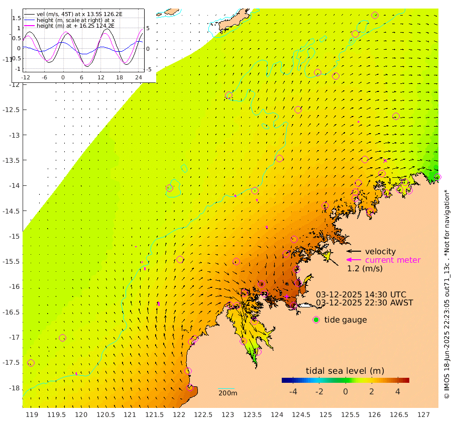 21cm/s -31T +10cm/s rms + 1cm/s 1T. NWSBRW 205m 23cm/s -16T +11cm/s rms + 6cm/s -110T. NWSROW 199m 21cm/s -21T +5cm/s rms + 2cm/s 65T. CAM050 58m 20cm/s -9T +12cm/s rms + 5cm/s 92T. CAM100 99m 6cm/s 1T +7cm/s rms + 1cm/s -85T. KIM400 396m 11cm/s -7T +9cm/s rms + 5cm/s -119T. KIM200 208m 25cm/s -6T +11cm/s rms + 5cm/s -147T. KIM100 99m 35cm/s -5T +8cm/s rms + 3cm/s -103T. KIM050 59m 13cm/s 34T +4cm/s rms + 2cm/s 23T. TIMORS88 91m 147cm Imperieuse Reef 107cm Mermaid Reef 266cm Broome 199cm Cape Baskerville 235cm Red Bluff 199cm Cape Boileau 105cm Scott Reef (WA) 148cm Ashmore Reef 300cm Karrakatta Bay 273cm Sunday Island 241cm Valentine Island 166cm Derby 237cm Port Usborne 310cm Bedford Islands 353cm Yampi Sound (Koolan Island) 395cm Macleay Island 255cm Adele Island 109cm Browse Island 422cm Shale Island 412cm Lizard Island 323cm Hall Point 301cm Degerando Island 268cm White Island 153cm Skua No. 4 Well 140cm Jabiru 244cm Maret Island 218cm Baudin Island 219cm Cape Voltaire (Krait Bay) 123cm Dillon Shoal 75cm Laminaria 247cm Port Warrender 189cm Troughton Island 221cm Cassini Island 163cm West Holothuria Reef Offshore 165cm Jar Island 163cm Lynher Bank 174cm Heywood Shoal 148cm Pee Shoal 119cm Van Cloon Shoal 110cm Carronade Island 106cm Guy Point 114cm Napier Broome Bay 46cm Lesueur Island