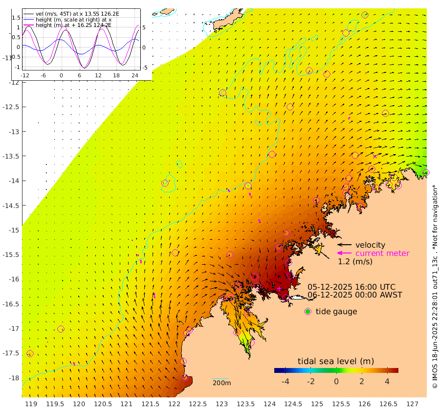 27cm/s -33T +10cm/s rms + 1cm/s 1T. NWSBRW 205m 29cm/s -19T +11cm/s rms + 6cm/s -110T. NWSROW 199m 29cm/s -24T +5cm/s rms + 2cm/s 65T. CAM050 58m 28cm/s -13T +12cm/s rms + 5cm/s 92T. CAM100 99m 8cm/s -6T +7cm/s rms + 1cm/s -85T. KIM400 396m 15cm/s -11T +9cm/s rms + 5cm/s -119T. KIM200 208m 31cm/s -9T +11cm/s rms + 5cm/s -147T. KIM100 99m 45cm/s -7T +8cm/s rms + 3cm/s -103T. KIM050 59m 22cm/s 32T +4cm/s rms + 2cm/s 23T. TIMORS88 91m 181cm Imperieuse Reef 126cm Mermaid Reef 320cm Broome 234cm Cape Baskerville 280cm Red Bluff 243cm Cape Boileau 124cm Scott Reef (WA) 170cm Ashmore Reef 363cm Karrakatta Bay 336cm Sunday Island 286cm Valentine Island 202cm Derby 291cm Port Usborne 374cm Bedford Islands 431cm Yampi Sound (Koolan Island) 463cm Macleay Island 298cm Adele Island 120cm Browse Island 523cm Shale Island 523cm Lizard Island 427cm Hall Point 369cm Degerando Island 326cm White Island 176cm Skua No. 4 Well 174cm Jabiru 286cm Maret Island 254cm Baudin Island 264cm Cape Voltaire (Krait Bay) 147cm Dillon Shoal 83cm Laminaria 301cm Port Warrender 219cm Troughton Island 255cm Cassini Island 189cm West Holothuria Reef Offshore 199cm Jar Island 198cm Lynher Bank 214cm Heywood Shoal 169cm Pee Shoal 140cm Van Cloon Shoal 134cm Carronade Island 132cm Guy Point 143cm Napier Broome Bay 55cm Lesueur Island