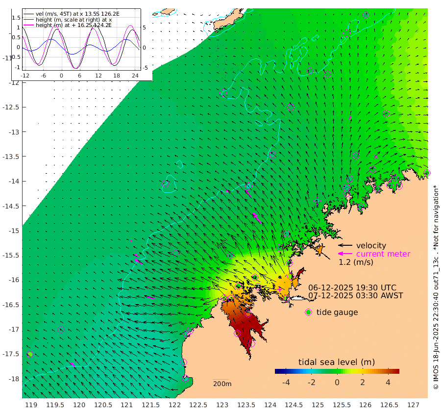 44cm/s -57T +10cm/s rms + 1cm/s 1T. NWSBRW 205m 45cm/s -47T +11cm/s rms + 6cm/s -110T. NWSROW 199m 107cm/s -37T +5cm/s rms + 2cm/s 65T. CAM050 58m 81cm/s -41T +12cm/s rms + 5cm/s 92T. CAM100 99m 18cm/s -65T +7cm/s rms + 1cm/s -85T. KIM400 396m 37cm/s -60T +9cm/s rms + 5cm/s -119T. KIM200 208m 67cm/s -53T +11cm/s rms + 5cm/s -147T. KIM100 99m 76cm/s -75T +8cm/s rms + 3cm/s -103T. KIM050 59m 30cm/s 23T +4cm/s rms + 2cm/s 23T. TIMORS88 91m 51cm Imperieuse Reef -111cm Mermaid Reef -175cm Broome -140cm Cape Baskerville -92cm Red Bluff -124cm Cape Boileau -98cm Scott Reef (WA) -66cm Ashmore Reef 67cm Karrakatta Bay 87cm Sunday Island 415cm Valentine Island 483cm Derby 350cm Port Usborne -14cm Bedford Islands -22cm Yampi Sound (Koolan Island) -43cm Macleay Island -86cm Adele Island -166cm Browse Island 57cm Shale Island 51cm Lizard Island -26cm Hall Point -73cm Degerando Island -115cm White Island -78cm Skua No. 4 Well -31cm Jabiru -132cm Maret Island -123cm Baudin Island -116cm Cape Voltaire (Krait Bay) -16cm Dillon Shoal -100cm Laminaria -93cm Port Warrender -45cm Troughton Island -108cm Cassini Island -87cm West Holothuria Reef Offshore -47cm Jar Island -102cm Lynher Bank -130cm Heywood Shoal -46cm Pee Shoal -19cm Van Cloon Shoal -53cm Carronade Island -63cm Guy Point -50cm Napier Broome Bay 3cm Lesueur Island