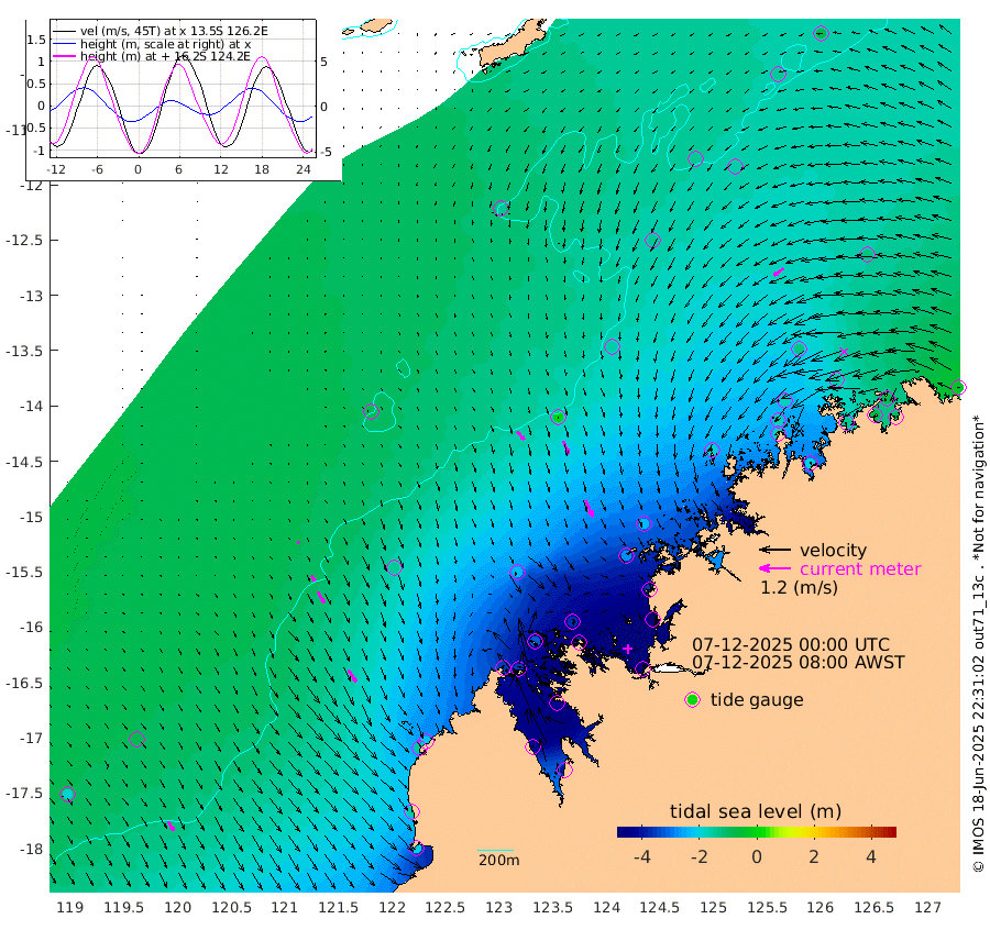 41cm/s 138T +10cm/s rms + 1cm/s 1T. NWSBRW 205m 42cm/s 150T +11cm/s rms + 6cm/s -110T. NWSROW 199m 70cm/s 157T +5cm/s rms + 2cm/s 65T. CAM050 58m 55cm/s 159T +12cm/s rms + 5cm/s 92T. CAM100 99m 11cm/s 154T +7cm/s rms + 1cm/s -85T. KIM400 396m 25cm/s 144T +9cm/s rms + 5cm/s -119T. KIM200 208m 49cm/s 150T +11cm/s rms + 5cm/s -147T. KIM100 99m 55cm/s 146T +8cm/s rms + 3cm/s -103T. KIM050 59m 48cm/s -126T +4cm/s rms + 2cm/s 23T. TIMORS88 91m -184cm Imperieuse Reef -85cm Mermaid Reef -199cm Broome -146cm Cape Baskerville -221cm Red Bluff -152cm Cape Boileau -84cm Scott Reef (WA) -139cm Ashmore Reef -348cm Karrakatta Bay -356cm Sunday Island -415cm Valentine Island -393cm Derby -409cm Port Usborne -330cm Bedford Islands -363cm Yampi Sound (Koolan Island) -364cm Macleay Island -227cm Adele Island -10cm Browse Island -476cm Shale Island -461cm Lizard Island -356cm Hall Point -284cm Degerando Island -228cm White Island -135cm Skua No. 4 Well -152cm Jabiru -189cm Maret Island -168cm Baudin Island -174cm Cape Voltaire (Krait Bay) -145cm Dillon Shoal -86cm Laminaria -203cm Port Warrender -160cm Troughton Island -170cm Cassini Island -133cm West Holothuria Reef Offshore -143cm Jar Island -145cm Lynher Bank -154cm Heywood Shoal -146cm Pee Shoal -121cm Van Cloon Shoal -88cm Carronade Island -88cm Guy Point -95cm Napier Broome Bay -41cm Lesueur Island