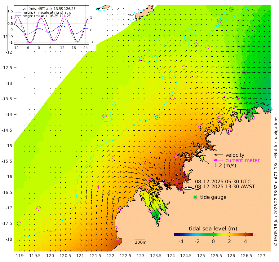 17cm/s -26T +10cm/s rms + 1cm/s 1T. NWSBRW 205m 18cm/s -10T +11cm/s rms + 6cm/s -110T. NWSROW 199m 7cm/s 20T +5cm/s rms + 2cm/s 65T. CAM050 58m 11cm/s 23T +12cm/s rms + 5cm/s 92T. CAM100 99m 6cm/s 42T +7cm/s rms + 1cm/s -85T. KIM400 396m 11cm/s 30T +9cm/s rms + 5cm/s -119T. KIM200 208m 18cm/s 22T +11cm/s rms + 5cm/s -147T. KIM100 99m 35cm/s 18T +8cm/s rms + 3cm/s -103T. KIM050 59m 23cm/s 57T +4cm/s rms + 2cm/s 23T. TIMORS88 91m 103cm Imperieuse Reef 101cm Mermaid Reef 289cm Broome 201cm Cape Baskerville 254cm Red Bluff 183cm Cape Boileau 88cm Scott Reef (WA) 106cm Ashmore Reef 285cm Karrakatta Bay 260cm Sunday Island 129cm Valentine Island 34cm Derby 162cm Port Usborne 328cm Bedford Islands 364cm Yampi Sound (Koolan Island) 390cm Macleay Island 244cm Adele Island 90cm Browse Island 447cm Shale Island 426cm Lizard Island 393cm Hall Point 307cm Degerando Island 274cm White Island 110cm Skua No. 4 Well 91cm Jabiru 220cm Maret Island 191cm Baudin Island 181cm Cape Voltaire (Krait Bay) 58cm Dillon Shoal 56cm Laminaria 192cm Port Warrender 81cm Troughton Island 161cm Cassini Island 99cm West Holothuria Reef Offshore 78cm Jar Island 161cm Lynher Bank 154cm Heywood Shoal 82cm Pee Shoal 19cm Van Cloon Shoal 1cm Carronade Island 0cm Guy Point -6cm Napier Broome Bay -123cm Lesueur Island