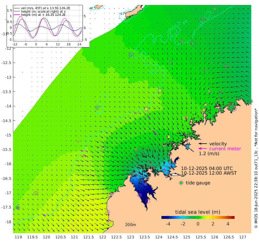 22cm/s 121T +10cm/s rms + 1cm/s 1T. NWSBRW 205m 34cm/s 138T +11cm/s rms + 6cm/s -110T. NWSROW 199m 78cm/s 145T +5cm/s rms + 2cm/s 65T. CAM050 58m 56cm/s 143T +12cm/s rms + 5cm/s 92T. CAM100 99m 12cm/s 119T +7cm/s rms + 1cm/s -85T. KIM400 396m 27cm/s 119T +9cm/s rms + 5cm/s -119T. KIM200 208m 49cm/s 125T +11cm/s rms + 5cm/s -147T. KIM100 99m 50cm/s 107T +8cm/s rms + 3cm/s -103T. KIM050 59m 26cm/s -134T +4cm/s rms + 2cm/s 23T. TIMORS88 91m -57cm Imperieuse Reef 58cm Mermaid Reef 134cm Broome 97cm Cape Baskerville 67cm Red Bluff 78cm Cape Boileau 43cm Scott Reef (WA) 18cm Ashmore Reef -60cm Karrakatta Bay -99cm Sunday Island -341cm Valentine Island -411cm Derby -294cm Port Usborne -4cm Bedford Islands 19cm Yampi Sound (Koolan Island) 24cm Macleay Island 45cm Adele Island 121cm Browse Island -26cm Shale Island -37cm Lizard Island 133cm Hall Point 56cm Degerando Island 89cm White Island 23cm Skua No. 4 Well 5cm Jabiru 88cm Maret Island 83cm Baudin Island 74cm Cape Voltaire (Krait Bay) -28cm Dillon Shoal 20cm Laminaria 64cm Port Warrender 6cm Troughton Island 62cm Cassini Island 37cm West Holothuria Reef Offshore 17cm Jar Island 52cm Lynher Bank 67cm Heywood Shoal -10cm Pee Shoal -27cm Van Cloon Shoal 10cm Carronade Island 13cm Guy Point 0cm Napier Broome Bay -45cm Lesueur Island