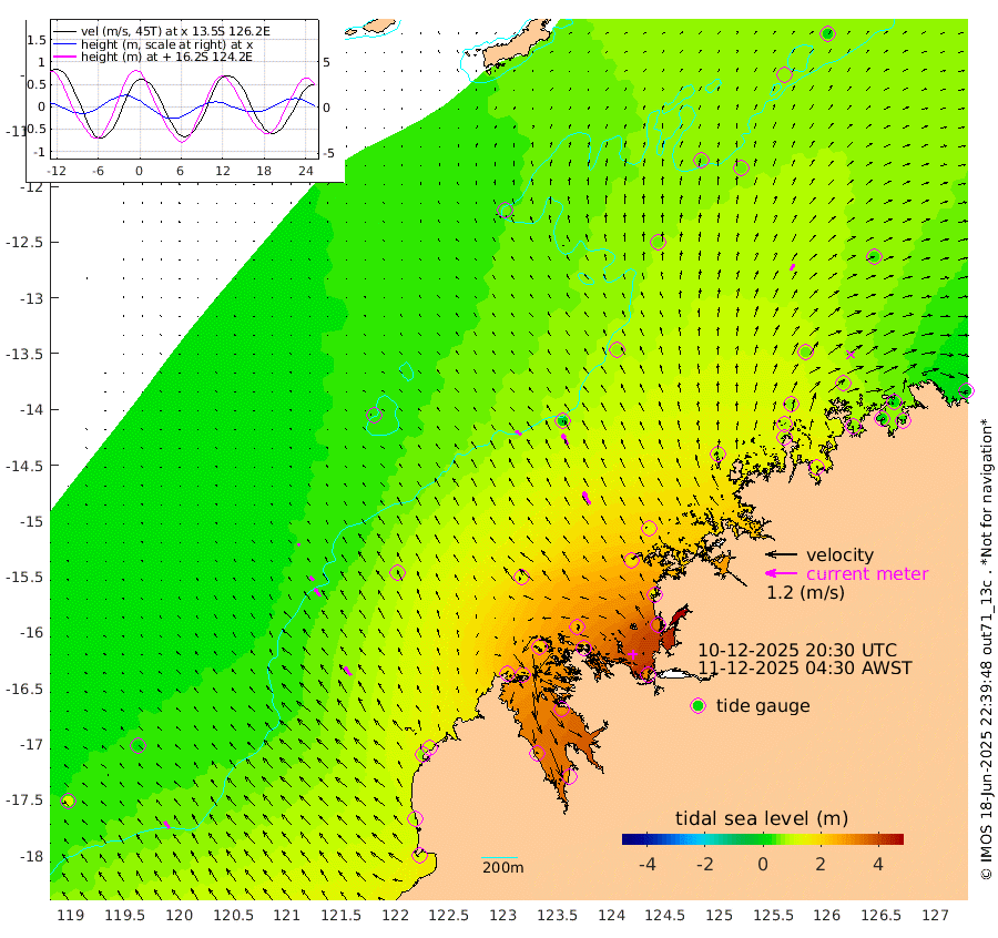 25cm/s -49T +10cm/s rms + 1cm/s 1T. NWSBRW 205m 31cm/s -34T +11cm/s rms + 6cm/s -110T. NWSROW 199m 53cm/s -30T +5cm/s rms + 2cm/s 65T. CAM050 58m 43cm/s -29T +12cm/s rms + 5cm/s 92T. CAM100 99m 9cm/s -36T +7cm/s rms + 1cm/s -85T. KIM400 396m 18cm/s -40T +9cm/s rms + 5cm/s -119T. KIM200 208m 36cm/s -35T +11cm/s rms + 5cm/s -147T. KIM100 99m 40cm/s -37T +8cm/s rms + 3cm/s -103T. KIM050 59m 27cm/s 30T +4cm/s rms + 2cm/s 23T. TIMORS88 91m 107cm Imperieuse Reef 28cm Mermaid Reef 110cm Broome 71cm Cape Baskerville 106cm Red Bluff 89cm Cape Boileau 34cm Scott Reef (WA) 52cm Ashmore Reef 220cm Karrakatta Bay 234cm Sunday Island 296cm Valentine Island 285cm Derby 292cm Port Usborne 203cm Bedford Islands 231cm Yampi Sound (Koolan Island) 249cm Macleay Island 130cm Adele Island -3cm Browse Island 313cm Shale Island 316cm Lizard Island 158cm Hall Point 172cm Degerando Island 139cm White Island 57cm Skua No. 4 Well 58cm Jabiru 88cm Maret Island 75cm Baudin Island 85cm Cape Voltaire (Krait Bay) 68cm Dillon Shoal 10cm Laminaria 110cm Port Warrender 66cm Troughton Island 71cm Cassini Island 53cm West Holothuria Reef Offshore 63cm Jar Island 74cm Lynher Bank 69cm Heywood Shoal 57cm Pee Shoal 44cm Van Cloon Shoal 23cm Carronade Island 26cm Guy Point 31cm Napier Broome Bay -19cm Lesueur Island