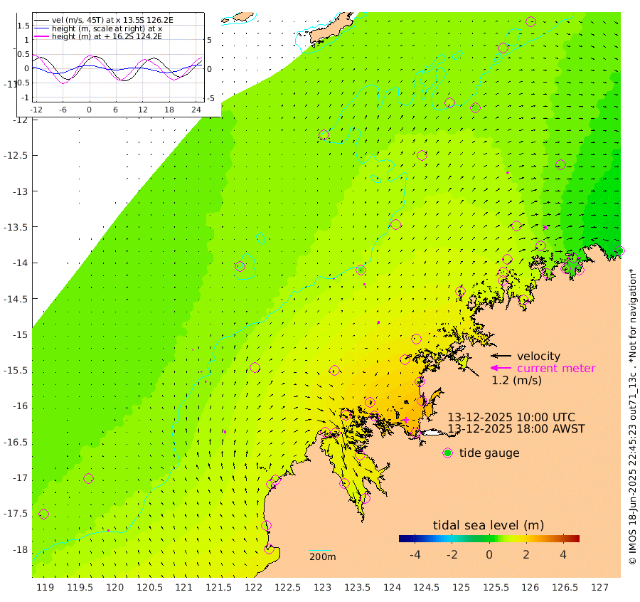 6cm/s -31T +10cm/s rms + 1cm/s 1T. NWSBRW 205m 12cm/s -15T +11cm/s rms + 6cm/s -110T. NWSROW 199m 14cm/s 1T +5cm/s rms + 2cm/s 65T. CAM050 58m 12cm/s 8T +12cm/s rms + 5cm/s 92T. CAM100 99m 4cm/s 33T +7cm/s rms + 1cm/s -85T. KIM400 396m 6cm/s 16T +9cm/s rms + 5cm/s -119T. KIM200 208m 13cm/s 7T +11cm/s rms + 5cm/s -147T. KIM100 99m 18cm/s 4T +8cm/s rms + 3cm/s -103T. KIM050 59m 12cm/s 46T +4cm/s rms + 2cm/s 23T. TIMORS88 91m 73cm Imperieuse Reef 65cm Mermaid Reef 133cm Broome 93cm Cape Baskerville 92cm Red Bluff 84cm Cape Boileau 64cm Scott Reef (WA) 76cm Ashmore Reef 143cm Karrakatta Bay 154cm Sunday Island 146cm Valentine Island 115cm Derby 155cm Port Usborne 166cm Bedford Islands 190cm Yampi Sound (Koolan Island) 221cm Macleay Island 138cm Adele Island 54cm Browse Island 229cm Shale Island 245cm Lizard Island 110cm Hall Point 152cm Degerando Island 147cm White Island 79cm Skua No. 4 Well 53cm Jabiru 118cm Maret Island 98cm Baudin Island 106cm Cape Voltaire (Krait Bay) 62cm Dillon Shoal 61cm Laminaria 120cm Port Warrender 86cm Troughton Island 97cm Cassini Island 80cm West Holothuria Reef Offshore 72cm Jar Island 99cm Lynher Bank 87cm Heywood Shoal 76cm Pee Shoal 48cm Van Cloon Shoal 45cm Carronade Island 47cm Guy Point 39cm Napier Broome Bay 6cm Lesueur Island